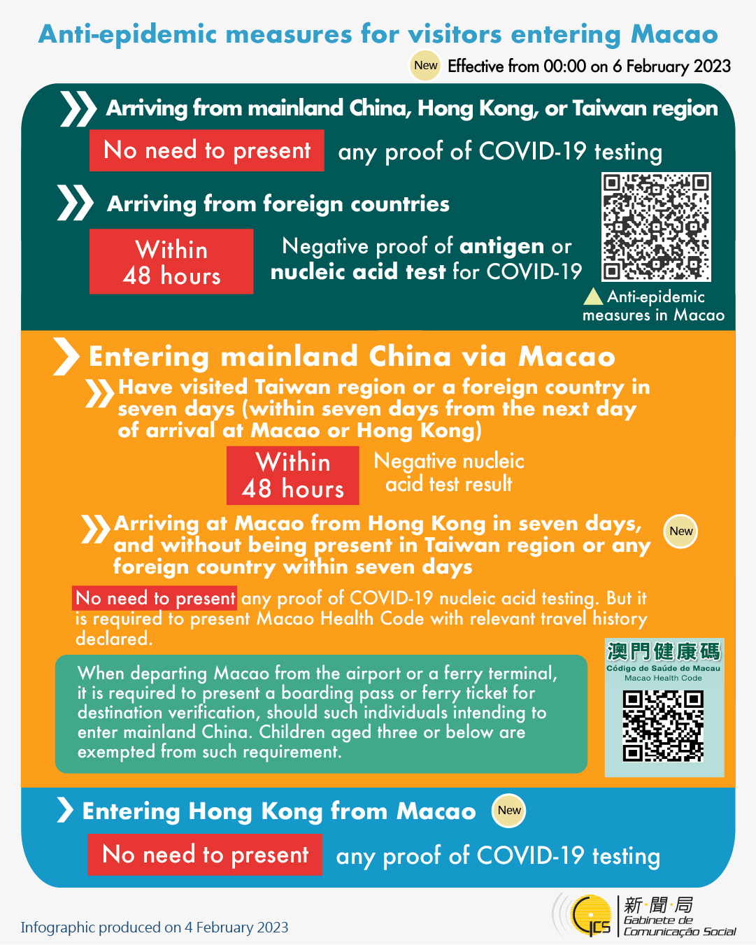[infographic] Anti-epidemic measures for visitors entering Macao (4 February 2023 )