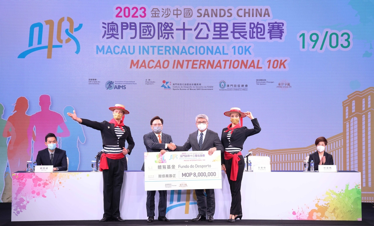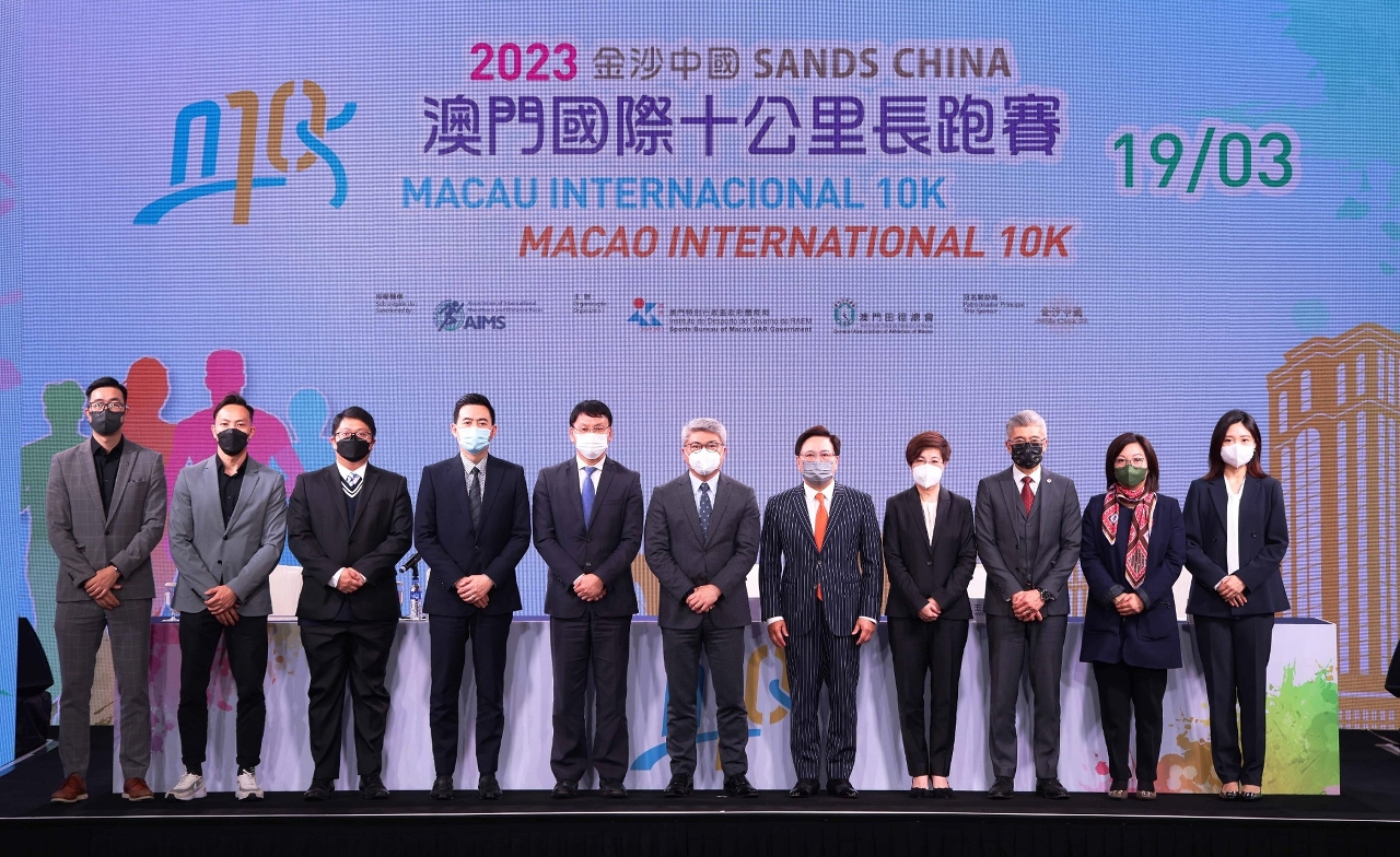 The 2023 Sands China Macao International 10K, jointly organized by the Sports Bureau and the General Association of Athletics of Macau, will be held on 19 March. Two race categories will be held, namely 10K and Fun Run (approximately 5km), with a total of 10,000 places available. Registration starts from 18 February for the 10K race and from 19 February for the Fun Run. A press conference was held today (8 February) by the Organizing Committee to announce the title sponsor of the event, as well as introducing the race details and registration arrangements.