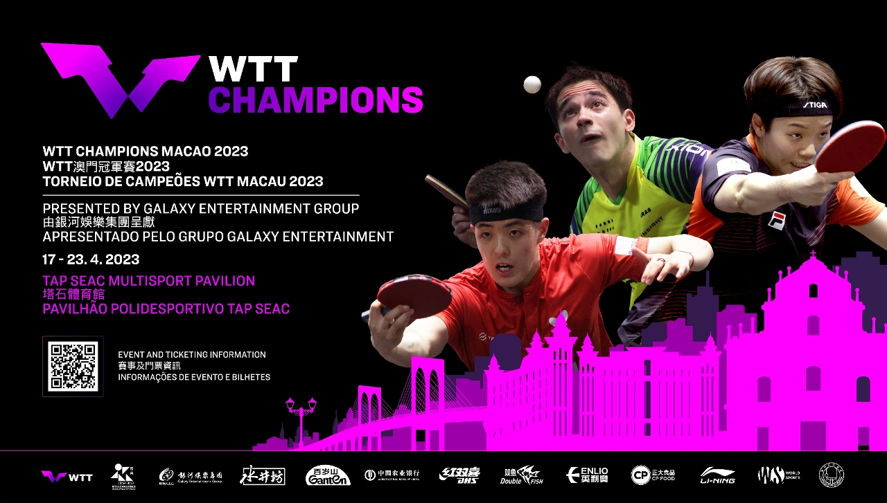 WTT Champions Macao 2023 presented by Galaxy Entertainment Group, organized by the Sports Bureau of the Macao SAR Government, World Table Tennis (WTT) and Galaxy Entertainment Group (GEG), and co-organized by the Macau Table Tennis General Association, will be held at Tap Seac Multisport Pavilion from 17 to 23 April 2023. The world’s elite players will line up to showcase their exceptional techniques to residents and tourists alike as they vie for the men’s and women’s singles title.