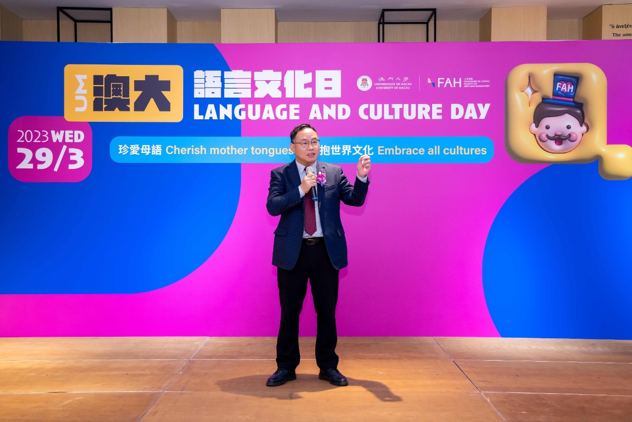 The Language and Culture Day is a signature event at UM organised by the FAH to promote the preservation of mother tongues and raise students’ awareness of the linguistic and cultural diversity in Macao. In his welcome speech, Xu Jie, dean of the FAH, said that multiculturalism and multilingualism are the unique characteristics of Macao and UM, and that Macao is both a ‘living cultural museum’ and a ‘natural language laboratory’. He also quoted the renowned anthropologist and sociologist Fei Xiaotong: ‘Cherish one’s own beauty, respect others’ beauty, and when all kinds of beauty are respected and cherished, the world will become one’, emphasising that people’s lives and the world are wonderful because of diversity.