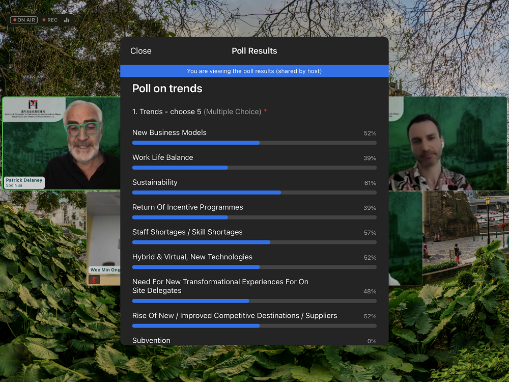 As the pandemic prevention measures relieved and normal border crossing resumed, the number of MICE events have increased significantly. In order to continuously facilitate the specialisation and internationalisation of the MICE industry, as well as the cultivation of professionals and practitioners in the MICE sector, the Macao Trade and Investment Promotion Institute (IPIM) launched the first online MICE training session of this year yesterday (20 April), under the theme “New Trends of the Asia-Pacific MICE Industry”, and invited industry experts and representatives to share their viewpoints, enabling local practitioners to update their knowledge and strengthen their competitiveness, so as to attract more professional MICE events to be held in Macao.