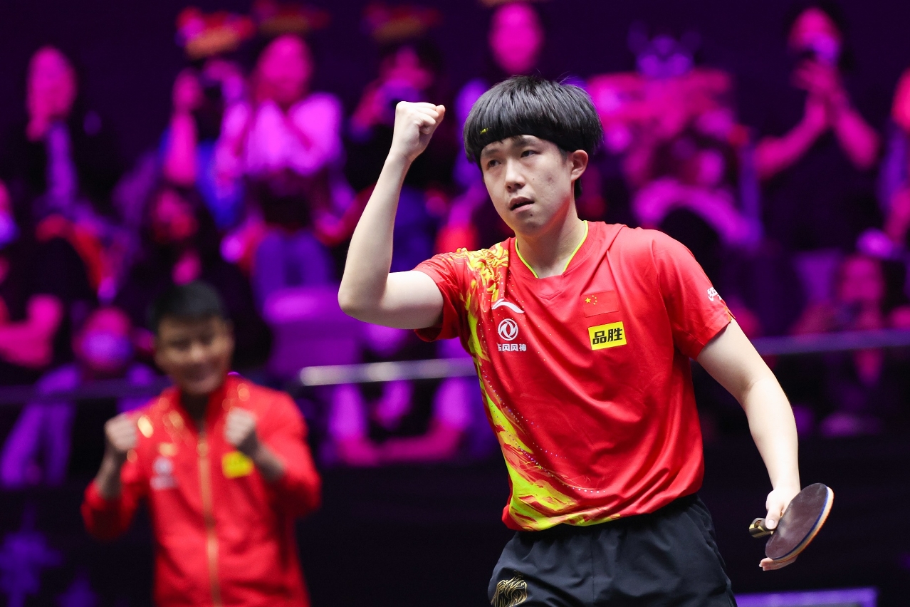 Defending champion Wang Chuqin is headed to the men’s singles final after a straight-game win (11-9, 11-9, 11-7, 11-4) over Tomokazu Harimoto of Japan. After a start and trailing the opening game 0-4, Wang fought his way back to 8-8 and took the first game 11-9. From then on Wang went from strength to strength to secure a place in tomorrow’s final.