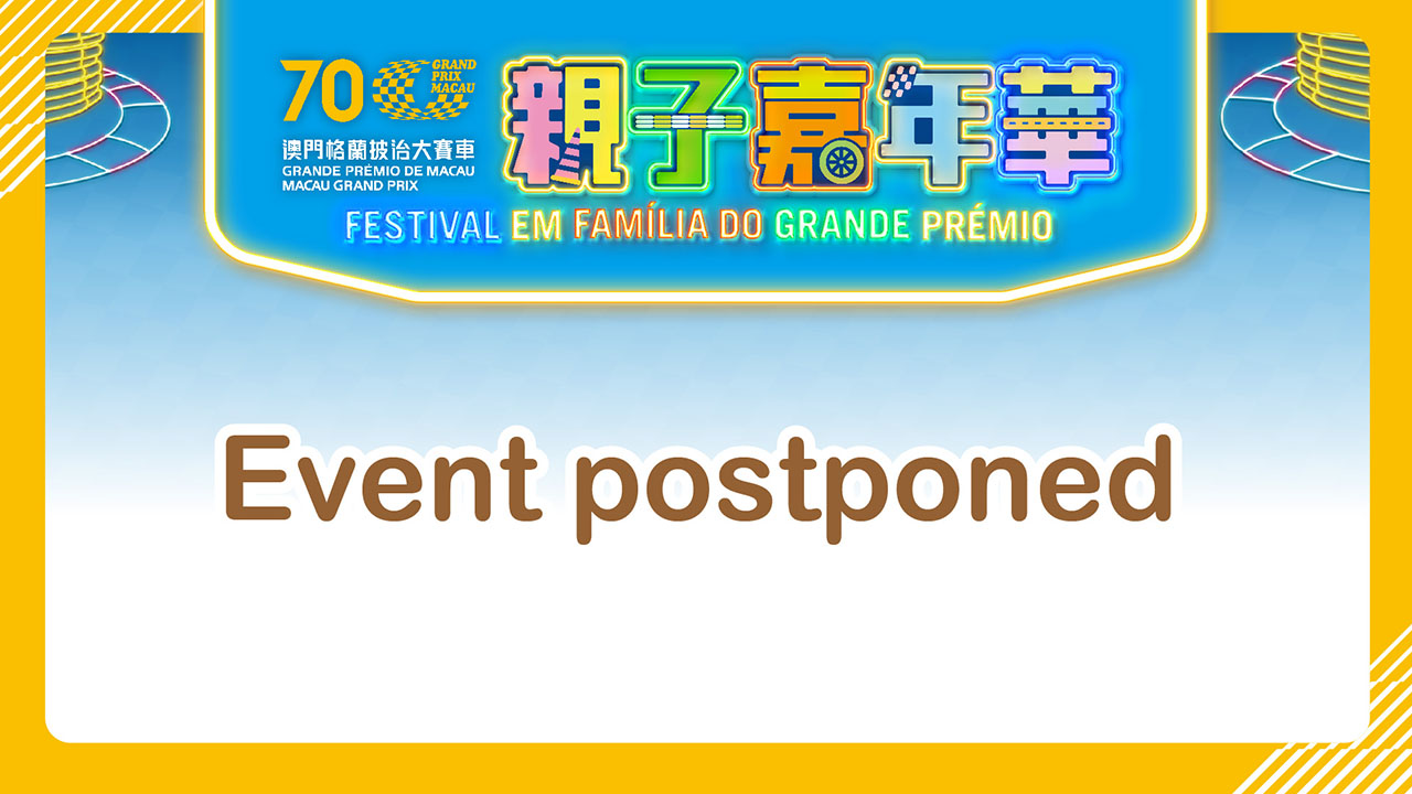 The Macau Grand Prix Organizing Committee announced that the 70th Macau Grand Prix - Family Carnival, originally scheduled to be held on 29 to 30 April, has been postponed due to foreseeable unstable weather. The rescheduled date will be announced in due course.