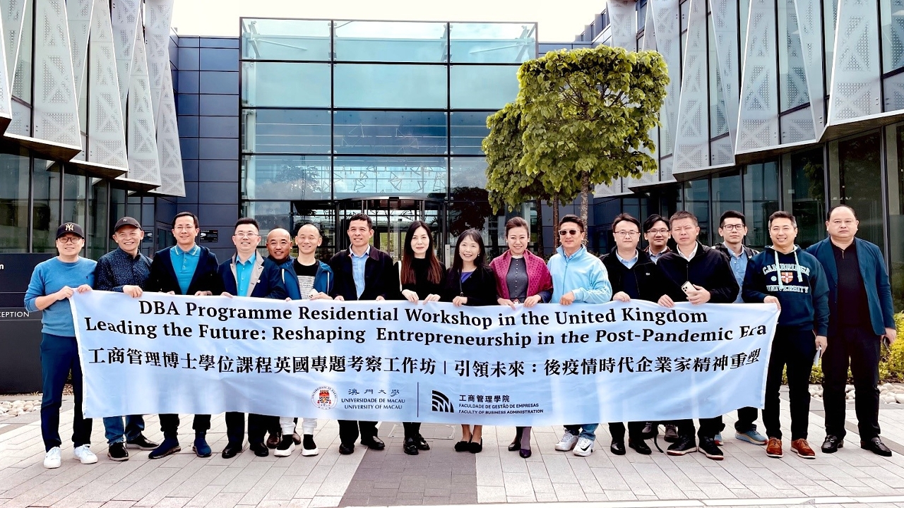 The 2020 intake students of the Doctor of Business Administration (DBA) programme at the University of Macau (UM) successfully held a residential workshop on ‘Leading the Future: Reshaping Entrepreneurship in the Post-Pandemic Era’ in the UK. The overseas workshop was a compulsory course of the DBA programme. Through visits to leading universities and business organisations, such as the University of Cambridge, the London School of Economics and Political Science, ARM Global Headquarters, the CBRE Group, Morgan Motor Company, the Cambridge Science Park, and the China-Britain Business Council, the students had the opportunity to interact with well-known scholars and business leaders to learn about the latest theories and practices of business management. One highlight of the workshop was a high table dinner at King’s College of the University of Cambridge, with guests including George Pippas, former councillor and former mayor of Cambridge. The students exchanged views with the guests on the cultural characteristics, traditions, and emerging industries of both China and the UK.