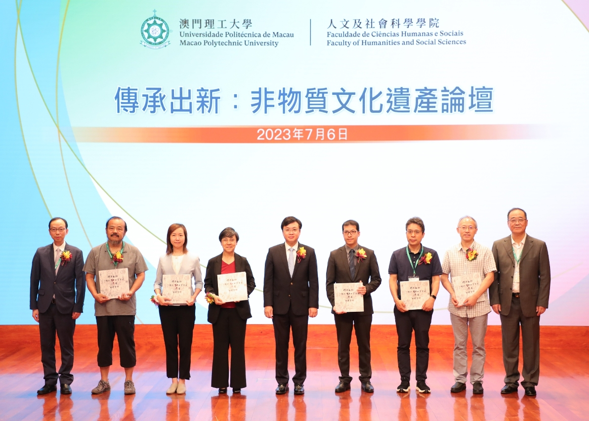 To support the development of Macao's cultural and tourism industry, to deepen the cultural development of the Greater Bay Area, and align with Macao's goal of becoming "a platform for cultural exchange and cooperation by promoting Chinese culture as the mainstream whilst preserving the unique pluralistic cultural heritage of Macao", the Faculty of Humanities and Social Sciences of Macao Polytechnic University held the "Inheritance and Innovation: Forum on Intangible Cultural Heritage" on July 6th. The forum aimed to explore the theoretical and practical issues related to the intangible cultural heritage (ICH) protection, inheritance and rejuvenation. The forum included academic presentations delivered by the eminent scholars in the field, in addition to the demonstrations of intangible cultural heritage performed by the living masters, inheritors and safeguarding units. The forum not only showcases the charm of intangible cultural heritage, but also highlights the diversity of Macao's culture. More than 100 experts, scholars, inheritance masters from Beijing, Shandong, Guangdong, and Macao attended the event, together with the faculty members and students of Macao Polytechnic University.