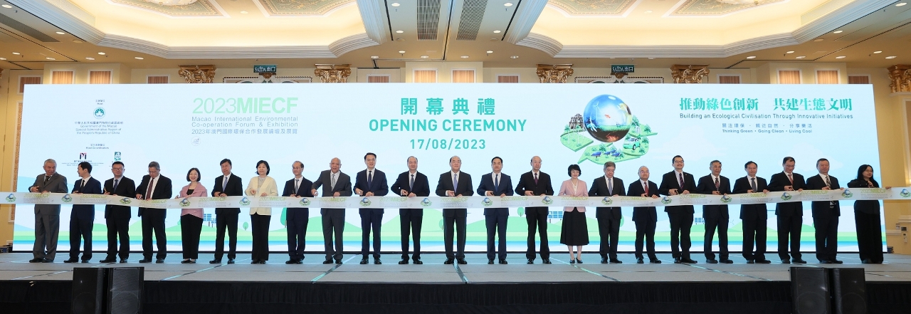 The opening ceremony of the 2023MIECF was officiated by Ho Iat Seng, Chief Executive of the Macao SAR; Zheng Xincong, Director of the Liaison Office of the Central People’s Government in the Macao SAR; Yang Wanming, Deputy Director of the Hong Kong and Macao Affairs Office of the State Council; Zhao Yingmin, MEE Vice Minister; and Liu Xianfa, Commissioner of the Ministry of Foreign Affairs of the People’s Republic of China in the Macao SAR.