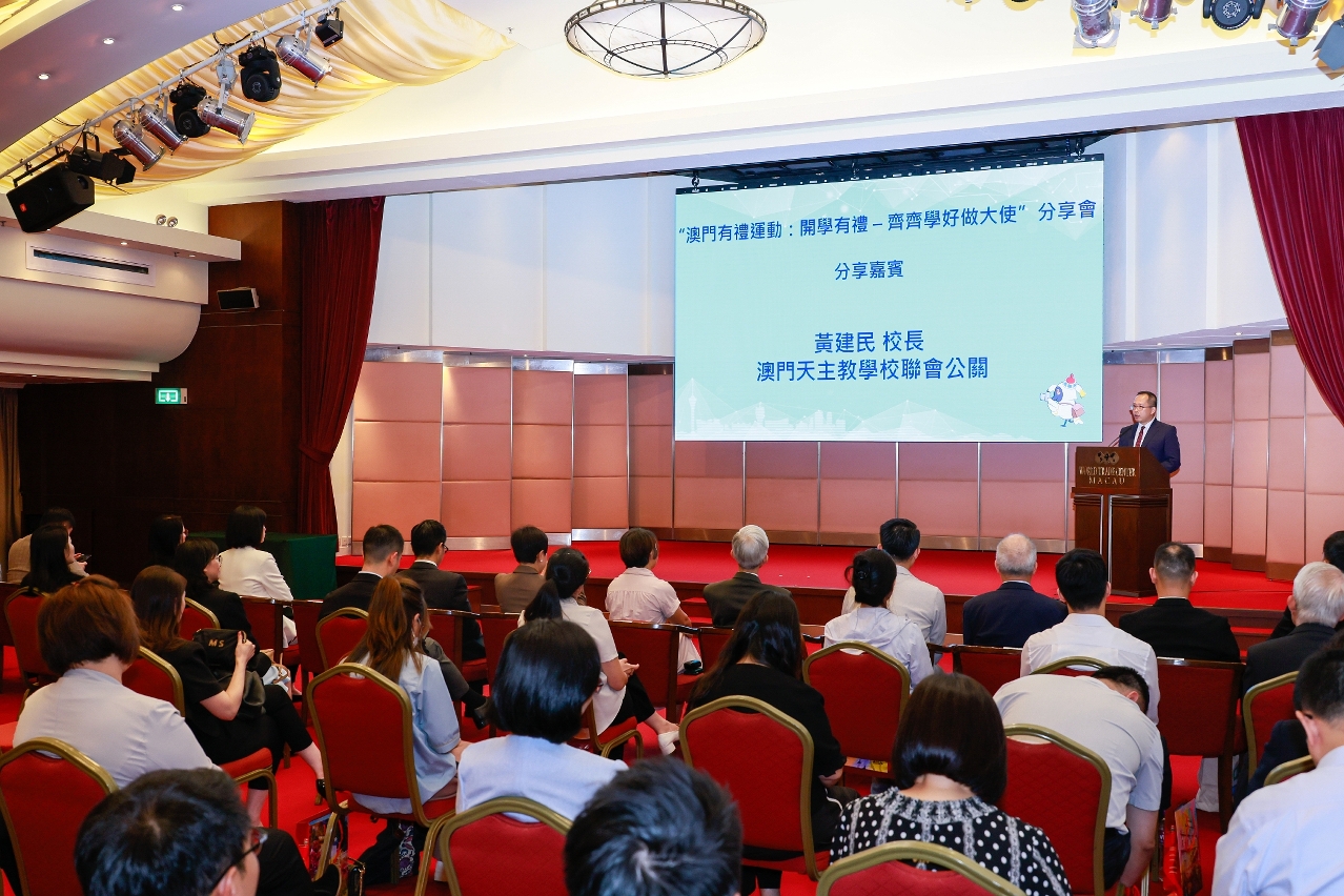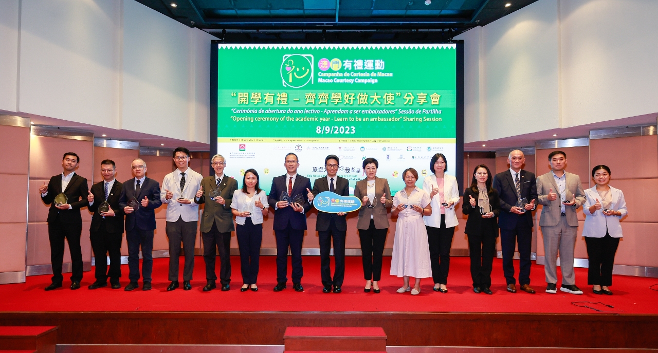 The “Macao Courtesy Campaign: Opening ceremony of the academic year - Learn to be an ambassador” Sharing Session was organized by MGTO and co-organized by Chinese Educators’ Association of Macau, Macao Catholic Schools Association and Macao Civil Service Educational Association. The supporting entities include the University of Macau, Macao Institute for Tourism Studies, Macao Polytechnic University, Academy of Public Security Forces, City University of Macau, University of Saint Joseph, Kiang Wu Nursing College of Macau, Macau University of Science and Technology, Macau Institute of Management and Macau Millennium College.