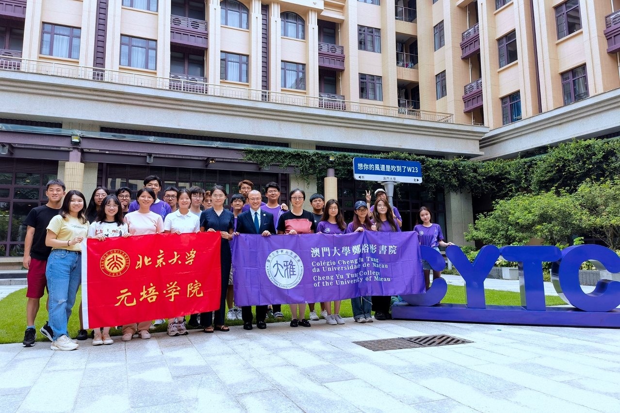 A delegation of students and faculty from Yuanpei College of Peking University visited Cheng Yu Tung College (CYTC) of the University of Macau (UM). Members of the two colleges participated in a series of exchange activities under the theme of ‘A Historical and Cultural Journey to Macao’, including lectures, visits, and workshops. The activities aimed to promote exchanges and mutual understanding between members of both parties, enhance academic exchanges, and improve their understanding of Macao’s history and culture.