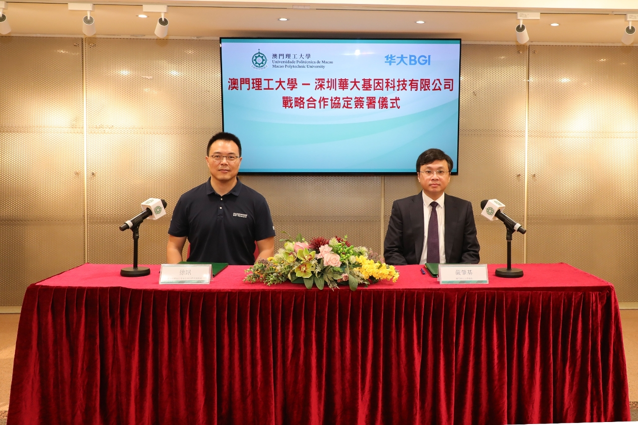 In line with Macao's "1+4" strategy for appropriate economic diversification, promoting the development of the “Big Health” industry, cultivating high-quality talents and carrying out innovative research, Macao Polytechnic University and Shenzhen BGI Genomics Technology Co., Ltd. held a signing ceremony for the "Strategic Cooperation Agreement" at Macao Polytechnic University on September 12th to jointly build a scientific research and teaching base through school-enterprise cooperation, and thereby contribute to the development of Macao and the Greater Bay Area.