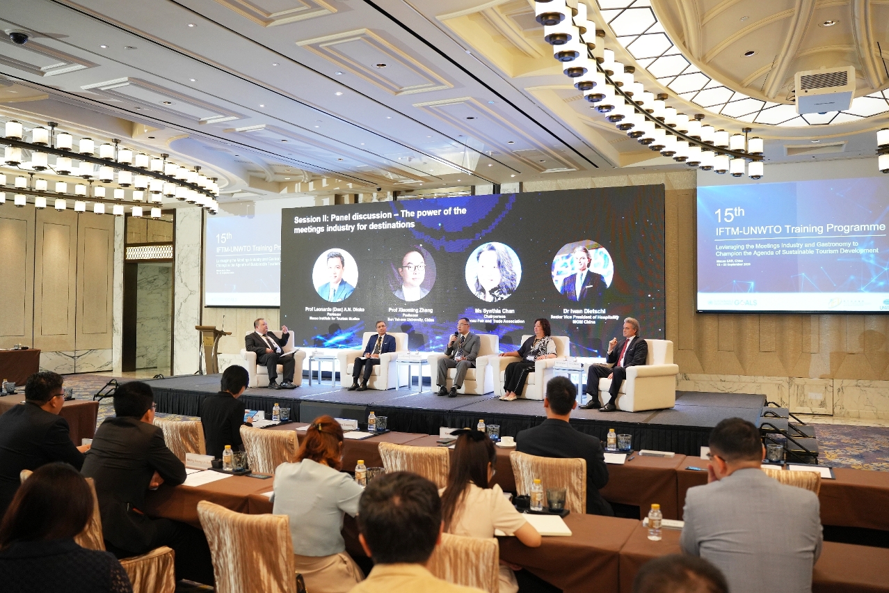 The Global Centre of Tourism Education and Training of the Macao Institute for Tourism Studies (IFTM), in collaboration with United Nations World Tourism Organisation (UNWTO), successfully kicked off her 15th training programme “Leveraging the Meetings Industry and Gastronomy to Champion the Agenda of Sustainable Tourism Development” on 18 September 2023 at MGM COTAI. This is the 1st face-to-face training after the pandemic.