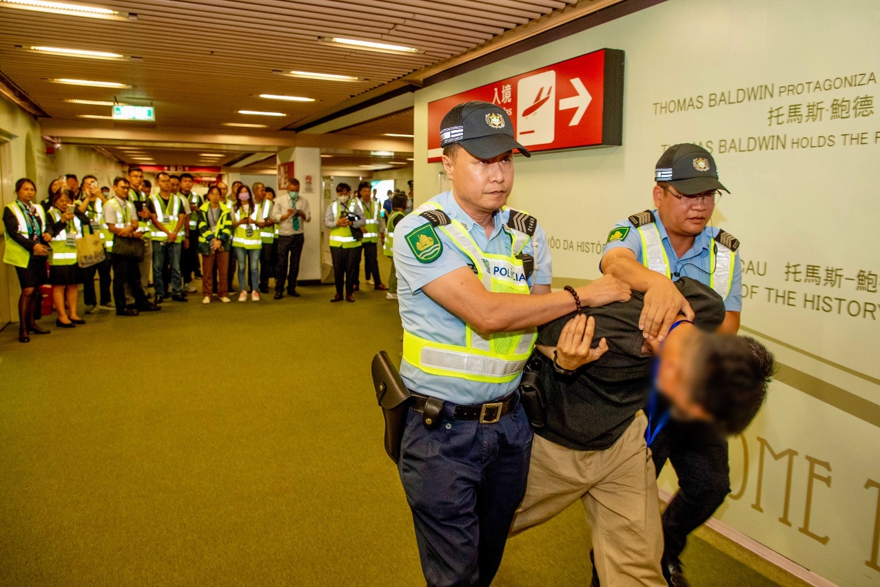 The Bomb Threat Exercise 2023 was coordinated by CPSP and involved the participation of Unitary Police Force, Macao Customs, Judiciary Police, Fire Services Bureau, Health Bureau, Marine and Water Bureau, Civil Aviation Authority, CAM-Macau International Airport Company Ltd, Macau Security Company Ltd. (airport security), Menzies Macau Airport Services Ltd. and Air Macau Company Ltd. About 140 participants joined the event which was deemed a success.