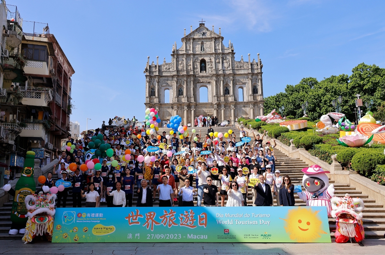 The World Tourism Day is designated on 27 September annually. Carrying on this long-held tradition, Macao Government Tourism Office (MGTO) welcomed the Lucky Tourist this morning and organized the “Macao Courtesy Campaign ‧ Tray Race” in the afternoon to celebrate this annual global tourism occasion together in a lively atmosphere.