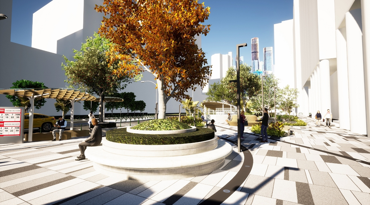 The project will be carried out in two phases. The first phase involves an area of about 3,300 square metres and includes the road section from the bus stop in Praça de Jorge Álvares to the square in front of Lake View Mansion. The finishes of the square will be replaced, green and leisure facilities will be added and more lights will be installed to improve the lighting at night and enhance the overall atmosphere of the square. A glass rain canopy will be added to the round staircase leading to the lower level. In addition, green belts will be used to separate the basement ventilation shaft to reduce the effect of the ventilation shaft on pedestrians. The locations of zebra crossings will also be adjusted to expand the waiting area of traffic islands and change the traffic flow of pedestrians crossing the roads to prevent pedestrians from passing by the ventilation shaft when they cross the street.