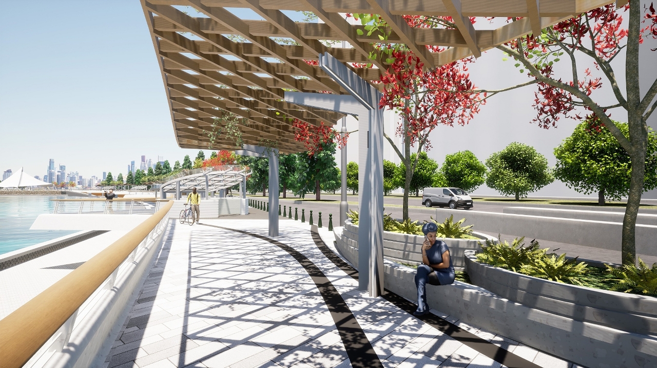 The second phase involves an area of about 7,400 square metres and includes the road section from the entrance to Anim’Arte NAM VAN to the Legislative Assembly. In addition to replacing the finishes of pavements and installing a glass rain canopy to the entrances and exits of staircases, trellises providing shade and flower pits will be added along the lakeside to increase the green area in the upper and lower levels. Moreover, as the surrounding barriers of the pavement are not tall enough and cause safety hazards, the old lakeside barriers will be dismantled and replaced with wavy metallic fences with wooden handrails. A suitable number of seats will be also installed along the lakeside to provide shade and a leisurely walking environment for pedestrians, as well as achieve the effect of separation of pedestrians and traffic.