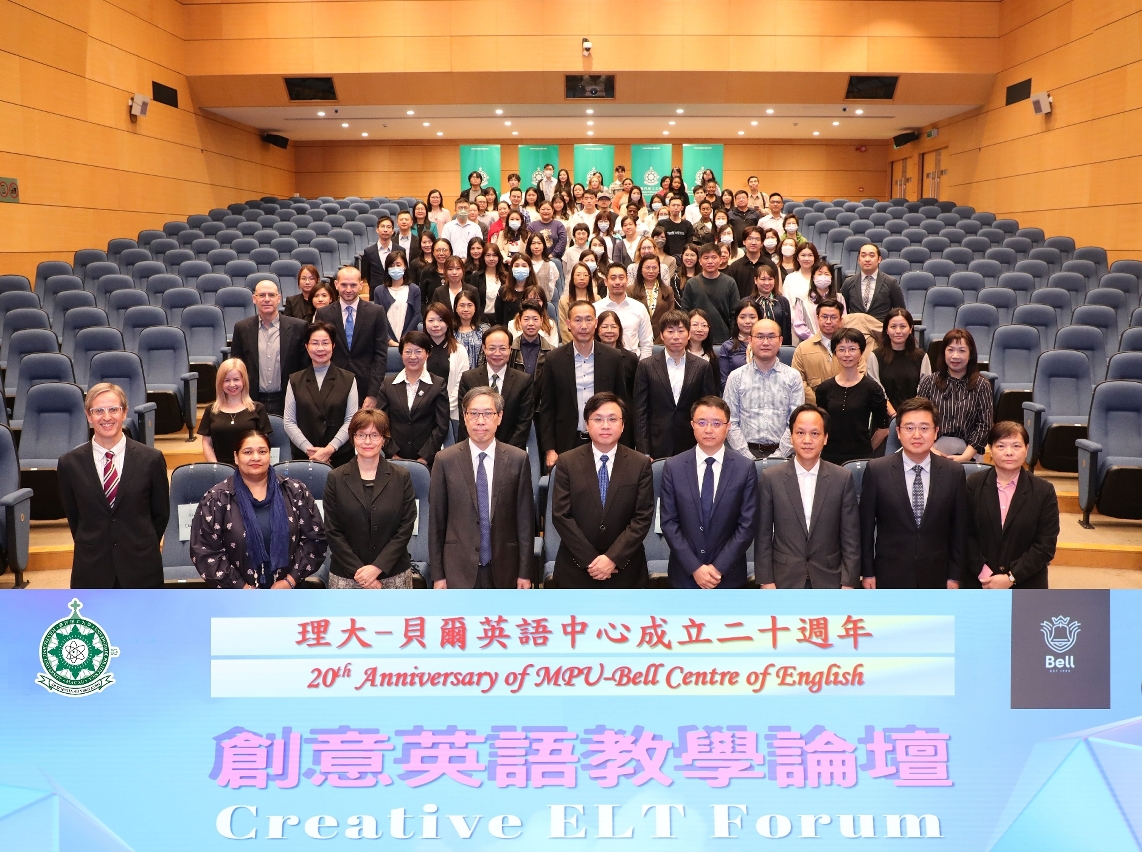 To cultivate English talents and local English teachers for the moderate diversification of Macao's "1+4" economy, the Macao Polytechnic University held the "20th Anniversary of MPU-Bell Centre of English – Creative English Language Teaching Forum" on 24th November. Renowned English teaching scholars from the Greater Bay Area were invited to share their insights, exploring the potential of Generative Artificial Intelligence (GenAI) in English teaching and the role of creative English teaching in the era of high technology, in order to promote high-quality development of education. Nearly 200 English teachers of Basic Education and from more than ten universities and schools in Macao attended the forum.