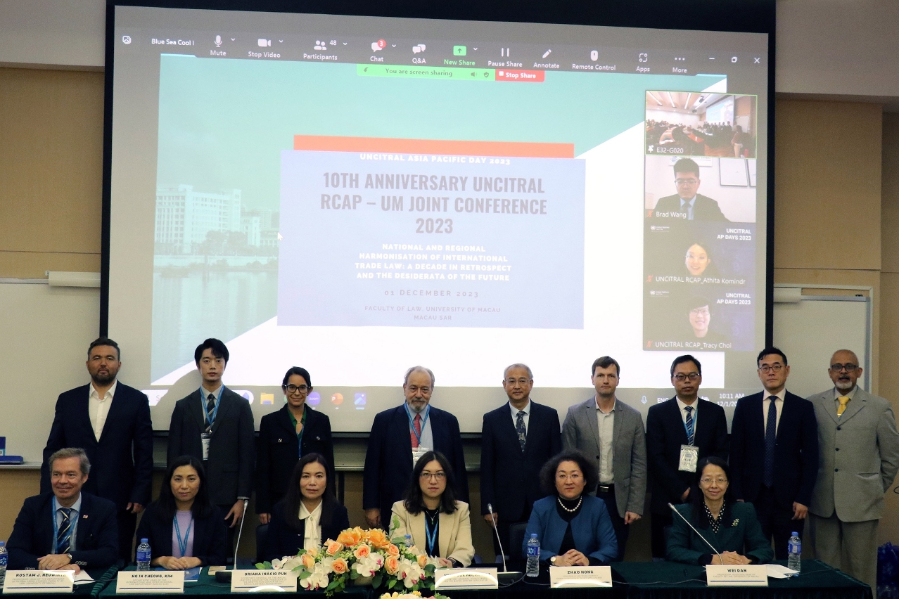 The University of Macau (UM) Faculty of Law (FLL) and the United Nations Commission on International Trade Law Regional Centre for Asia and the Pacific (UNCITRAL-RCAP) today (1 December) held their 10th anniversary joint conference titled ‘National and Regional Harmonisation of International Trade Law: A Decade in Retrospect and the Desiderata of the Future’, where landmark developments in the harmonisation of international trade law in the past decade and future needs were discussed.