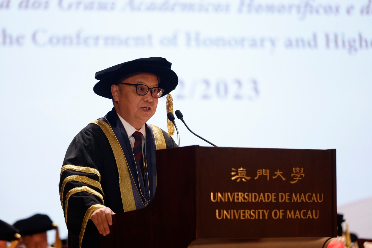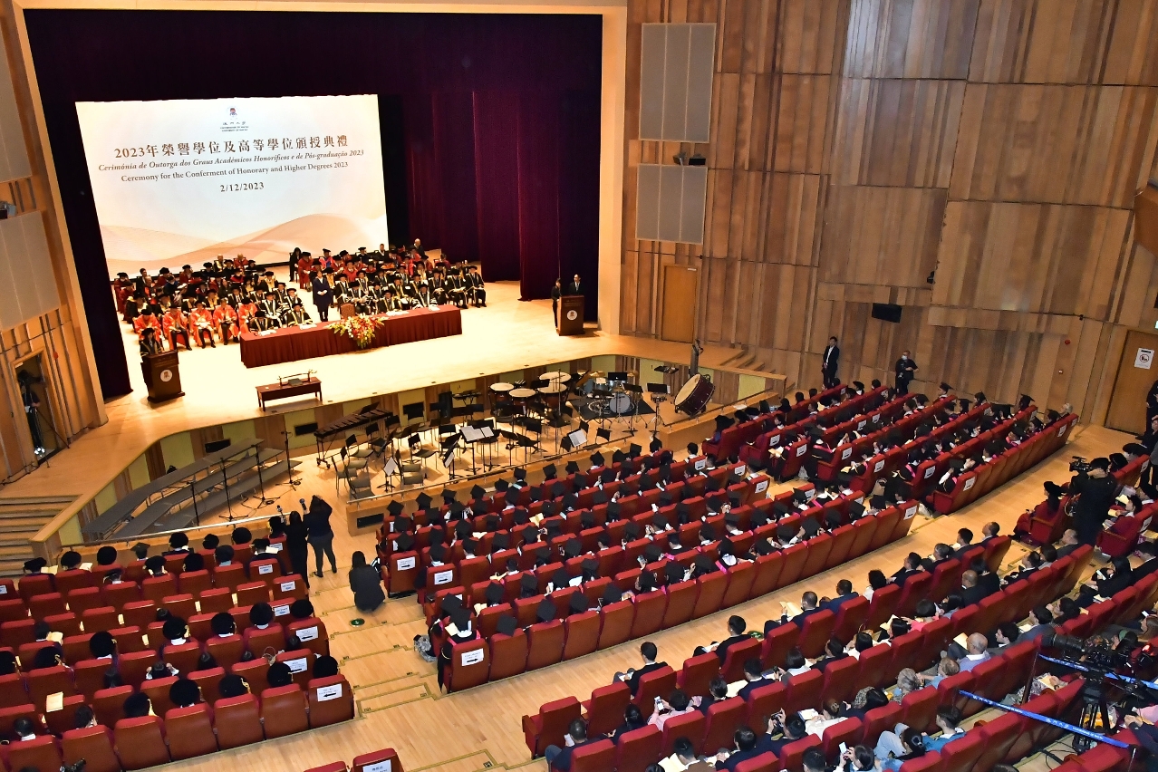 The University of Macau (UM) today (2 December) held the Ceremony for the Conferment of Higher Degrees 2023. Secretary for Social Affairs and Culture Ao Ieong U, acting as the representative of the chief executive of the Macao SAR and UM chancellor, said that UM has achieved remarkable results in various fields and its international reputation has continued to grow. This year, more than 1,500 students graduated from the university’s doctoral programmes, master’s degree programmes, and postgraduate certificate/diploma programmes.
