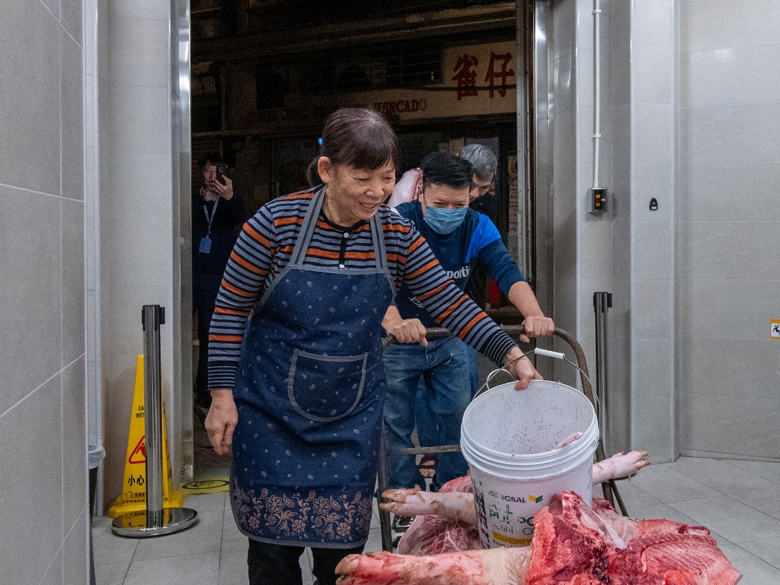The reorganisation plan involved preservation of the architectural appearance of Horta da Mitra Market, additional installation of air-conditioning and ventilation systems, improvement of the lighting system, upgrade of the sewerage equipment of the market, addition of barrier-free public toilets and facilities, adjustment of the ratio of male and female toilet cubicles, etc. Furthermore, the layout of the market has been adjusted through the reorganisation works. The vending zone and the work zone are specially equipped with independent entrances and exits for separation between the flow of consumers shopping in the market and that of the stall vendors’ transportation of goods. Consumers can access the market through the two entrances and exits in Rua de Horta e Costa, one of which has been changed to a barrier-free ramp to facilitate the public’s use. Meanwhile, goods can enter the market through the logistics area in Rua de Henrique de Macedo to achieve the separation of dry and wet zones. In coordination with the air-conditioning and ventilation systems and the daily management of the market, the wet and slippery environment of the traditional market has been improved.