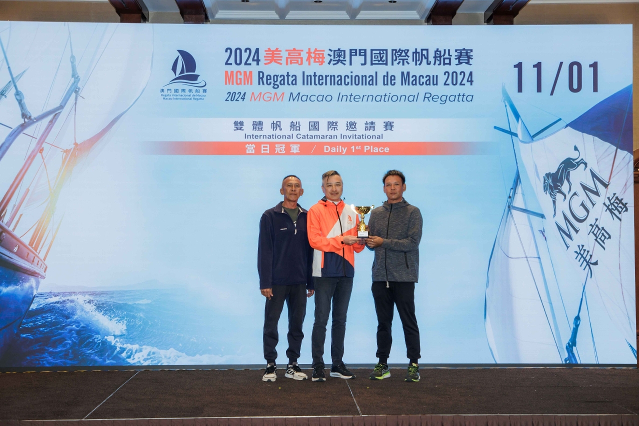 The organizers held the opening ceremony this morning at the Macau Fisherman's Wharf and the daily awards presentation at Artyzen Grand Lapa Macau after the conclusion of today’s races. Guests in attendance included Pun Weng Kun, President of Sports Bureau; Kenneth Feng, President and Executive Director of MGM China Holdings Limited; Ma Man Wai, President of the Ursa Major Sailing Event Management; Christine Lam and Luís Gomes, Vice Presidents of Sports Bureau; Irene Wong, Senior Vice President of Public and Community Relations of MGM; Jessie Kuan, Executive Director of Public Relations of MGM; Chan Un Seng, Head of Maritime Services Division of Marine and Water Bureau; Li Yue, Vice-Chairman of Macau Sailing Association; and members of Sports Committee.