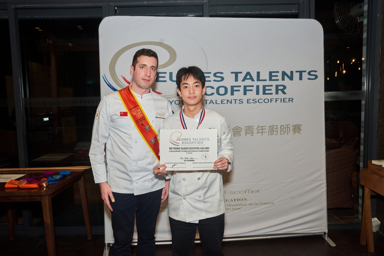 Students from the Macao Institute for Tourism Studies (IFTM) performed well in the " Macau Young Talents Escoffier Competition 2024" held on January 17 at the Macao University of Science and Technology (MUST). This highly anticipated team-based event showcased the exceptional skills and collaboration of young culinary talents, and it is one of the most important and prestigious international competitions for young cooks and young waiters/waitresses under 25 years of age.