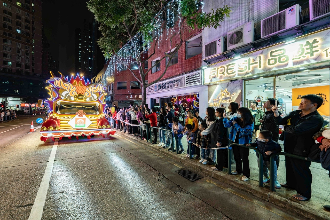 The second parade of the “Celebrations of the 25th Anniversary of the Establishment of the Macao SAR – Parade for Celebration of the Year of the Dragon 2024” was held tonight (17 February), the 8th day of Chinese New Year. 15 uniquely-stunning floats filled the northern district with best wishes and carried on the festive ambience, attracting residents and visitors into the community for a memorable night of Chinese New Year, thereby invigorating the community economy.