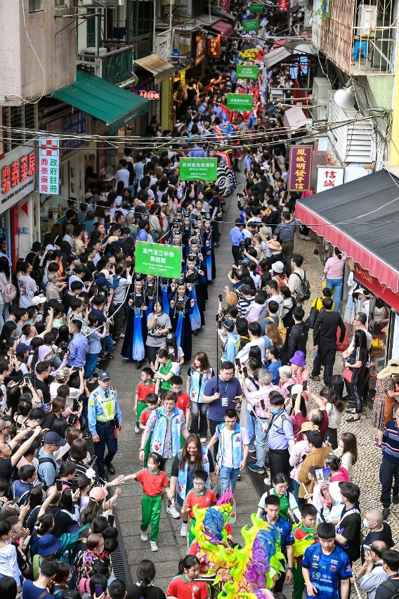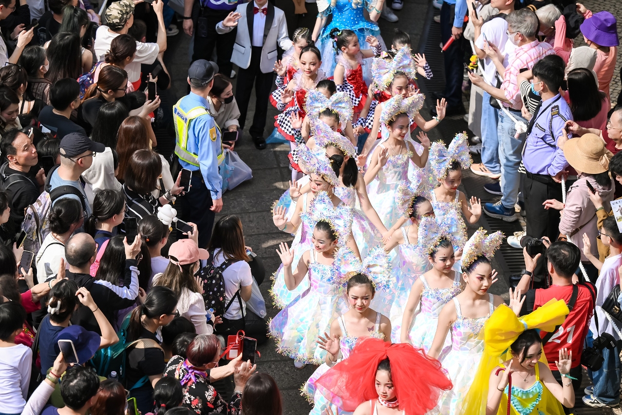 Organised by the Cultural Affairs Bureau (IC, from the Portuguese acronym), Galaxy Entertainment Group, Melco Resorts & Entertainment, MGM, Sands China Ltd., SJM Resorts, S. A. and Wynn Resorts (Macau), S. A., the “2024 Macao International Parade” celebrating the 25th anniversary of Macao’s Return to the Motherland, was held on 24 March (Sunday). Upholding the spirit of “Love, Peace and Cultural Integration”, this year’s Parade featured a total of over 1,800 performers from over 80 local groups and participating groups from across the world, who gave their most marvellous artistic performances of diverse styles, fully demonstrating the appeal of exchanges between civilisations and highlighting the cultural vitality of Macao as a “City of Performing Arts”.