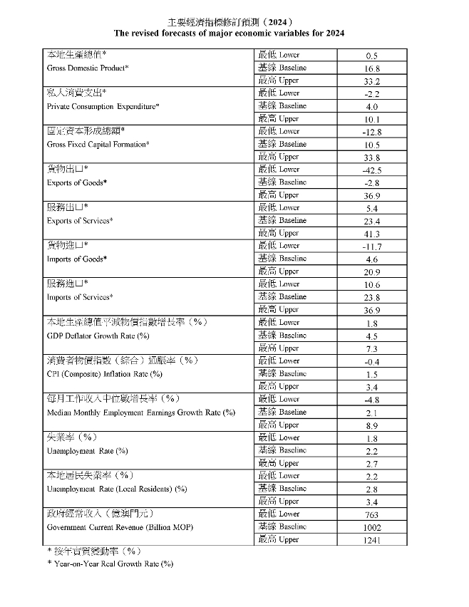 - The unemployment rate is projected to be 2.2%, with the unemployment rate of Macao residents expected to be 2.8%.