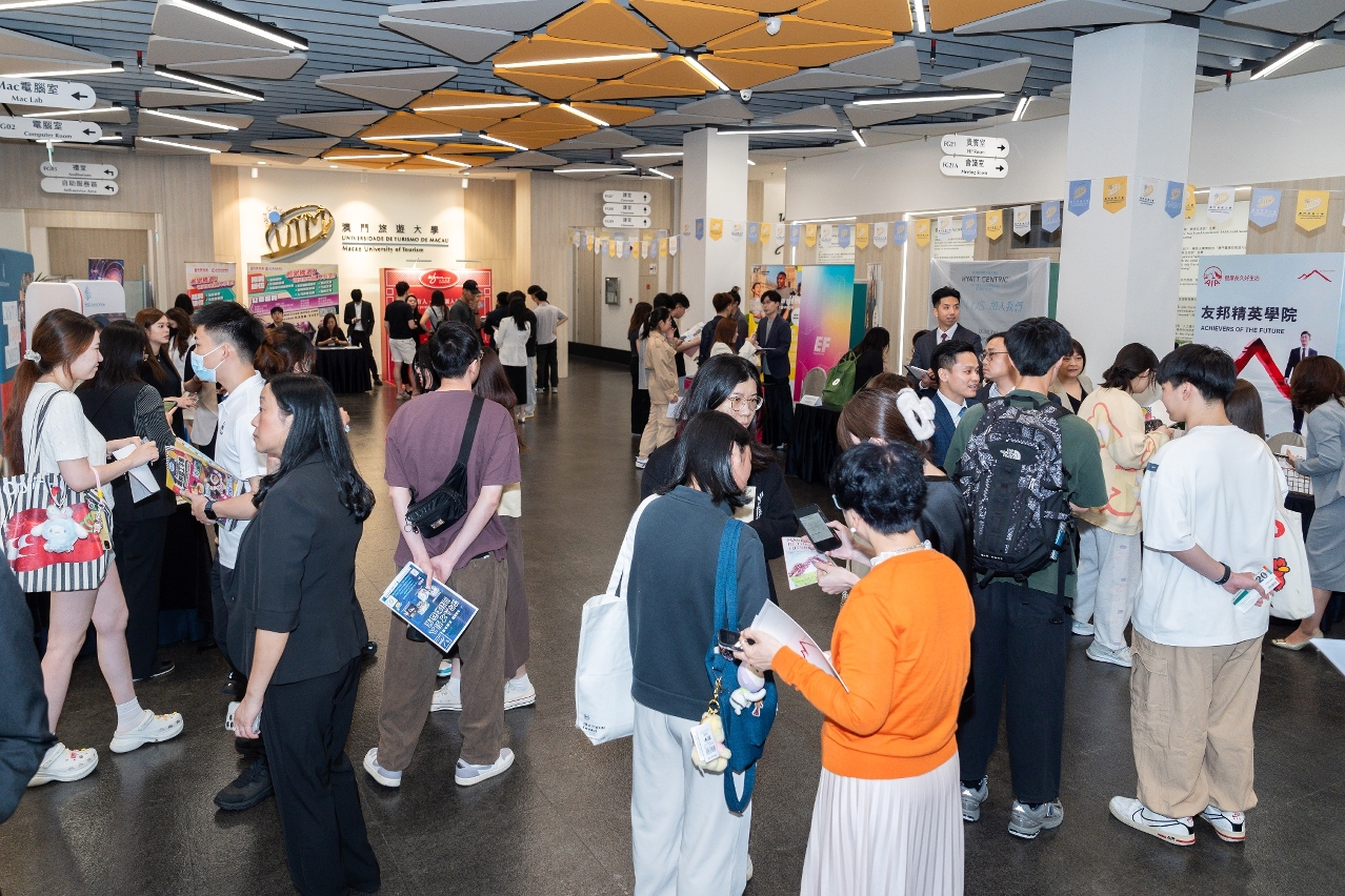 Macao University of Tourism (UTM) held 2024 Career Day on 16 April at Taipa Campus. A total of 65 organisations (including 3 from Guangdong and 1 from Hong Kong SAR) from various sectors set booths and provided over 1,500 job vacancies with job details and employment information, as well as the latest trend in the job market to UTM graduating students. The Career Day aimed to provide a direct communication platform among students and employers as well as to better prepare graduating students for successful job application later.