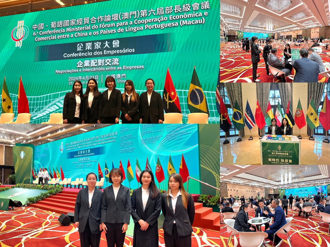 Macao Polytechnic University (MPU) selected outstanding students to participate in internships at the 6th Ministerial Conference of the Forum for Economic and Trade Cooperation between China and Portuguese-speaking Countries in order to expand Macau’s role as a Platform for Sino-Portuguese Cooperation and cultivate high-quality Sino-Portuguese bilingual talents with an international perspective. Nearly fifty students from MPU’s master’s degree program in Chinese-Portuguese Translation and Interpreting, the bachelor’s degree program in Chinese-Portuguese/Portuguese-Chinese Translation and Interpretation, and the bachelor’s degree program in Sino-Lusophone Trade Relations took part in the Ministerial Conference. They provided translation services, assisted delegates, and showcased strong bilingual Chinese-Portuguese communication skills, in-depth knowledge of China and Portuguese-speaking countries, and a hospitable service attitude. Their performance received high praise from conference guests representing delegations of the Portuguese-speaking countries.