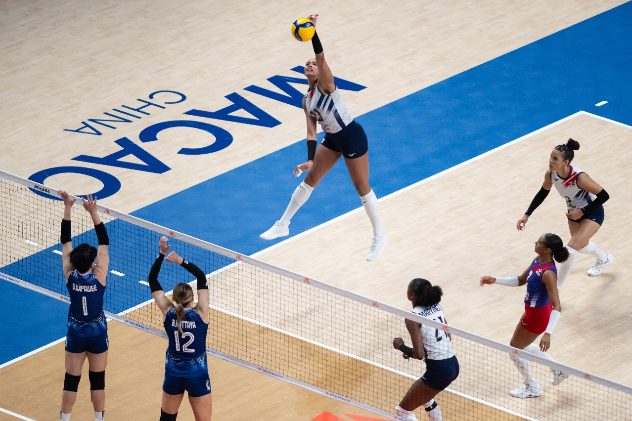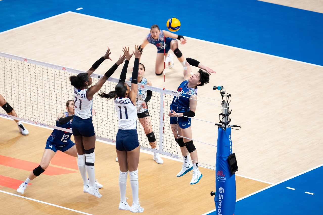 VNL Macao got underway with the match of Thailand v Dominican Republic. Both teams made a quick start. Although the Dominican Republic attacked well, they struggled with blocking as the Thais took the first set 25-22. The Dominican Republic responded well to take set 2 by 25-20 to tie the match. Thailand then stepped up a gear to suppress their opponent, winning the next two sets 25-17 and 26-24 to record their first win in VNL 2024.