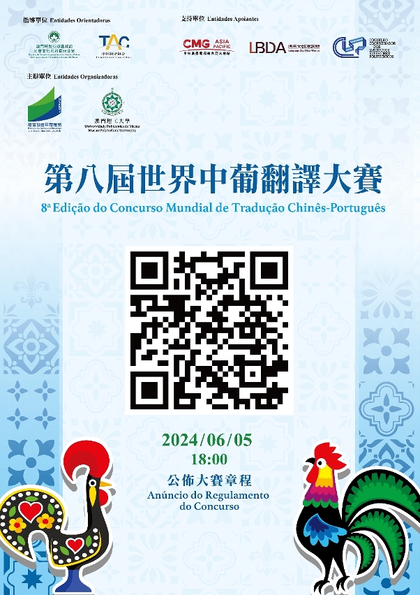2024 marks the twin anniversaries of the 75th anniversary of the founding of the People's Republic of China and the 25th anniversary of Macao's return to the motherland. In order to support the country's "Belt and Road Initiative" and enhance Macao's role as a platform for promoting cooperation and exchanges between China and Portuguese-speaking countries in various fields, the "8th World Chinese-Portuguese Translation Competition” aims to facilitate cultural exchanges and mutual learning between China and Portuguese-speaking countries, and showcase the spiritual identity and cultural essence of Chinese civilization on a global scale. The competition, co-organized by the Education and Youth Development Bureau of the Macao SAR Government and Macao Polytechnic University, has its grand launch on June 5th. Students from around the world are welcome to register for the competition.