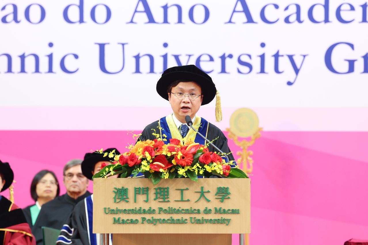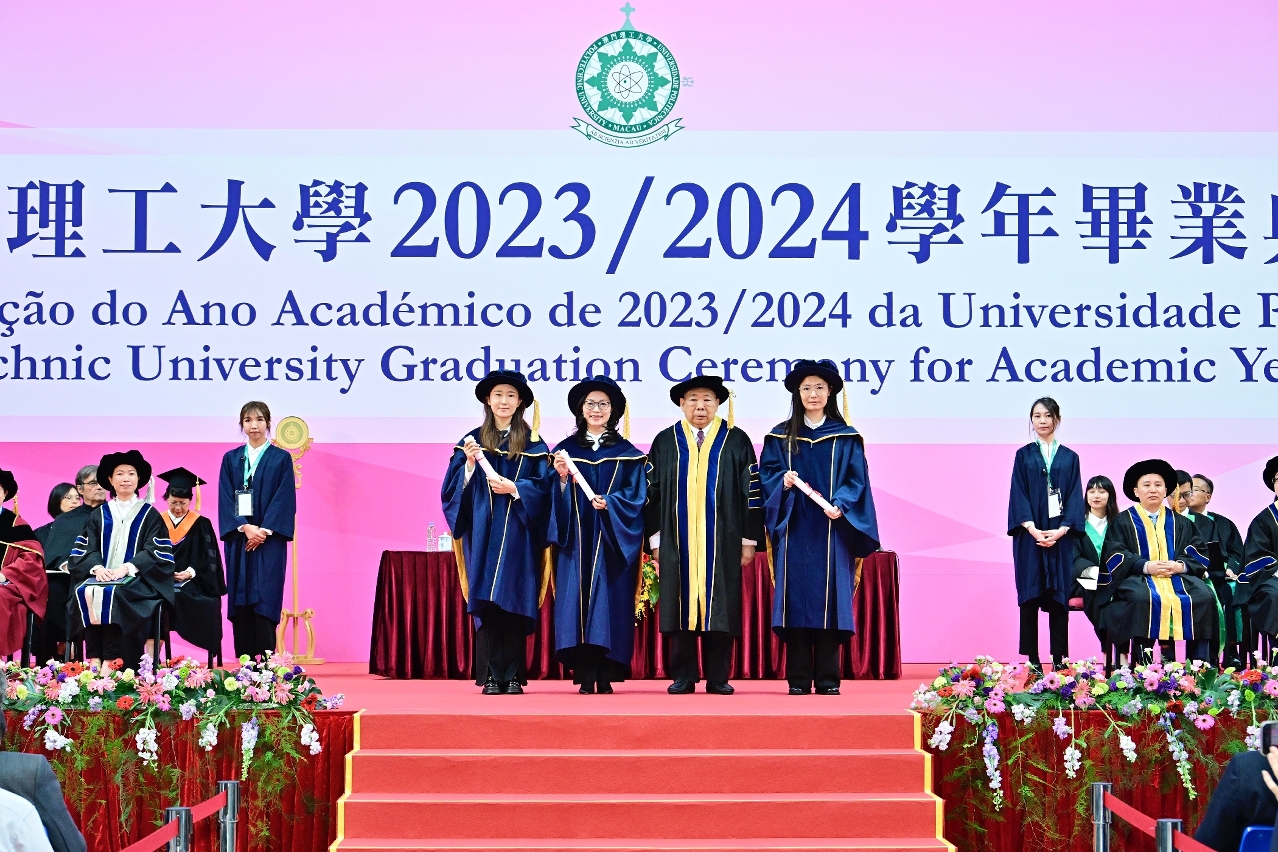 Macao Polytechnic University (MPU) held the graduation ceremony of the academic year 2023/2024 today, June 7th, at 4 PM in the Multi-Sport Pavilion. The ceremony featured the raising of the national flag and the singing of the national anthem. A total of one thousand students graduated, including those receiving doctoral, master's, and bachelor's degrees. During the ceremony, honorary doctorate degrees were also awarded to individuals who have made significant contributions to society and educational development. The Secretary for Social Affairs and Culture, Ao Ieong U, who represented the Chief Executive of the Macao SAR and Chancellor of MPU, stated that MPU has more effectively utilized the academic and research strengths of Macao's higher education institutions in major initiatives such as promoting the moderate diversification of Macao's economy, constructing the Greater Bay Area's technology and innovation corridor, and developing the Portuguese Language Education Alliance in the Greater Bay Area.