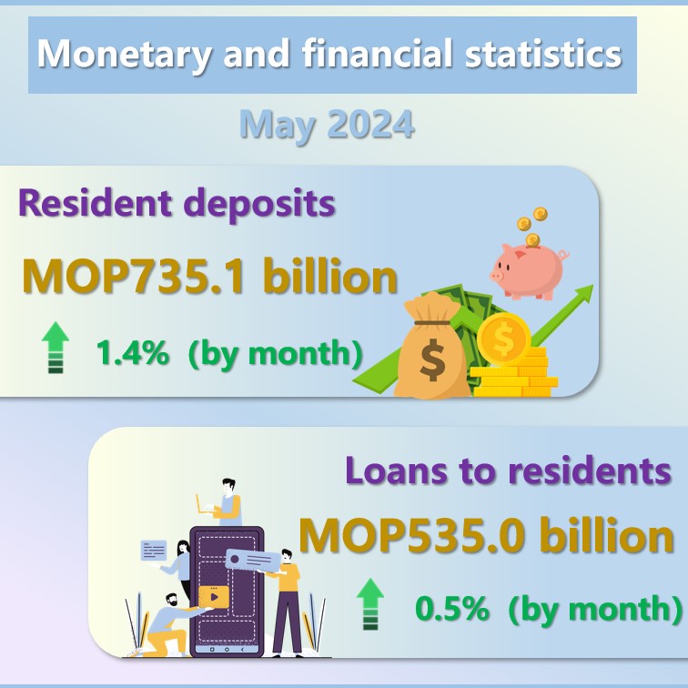 According to statistics released today (3 July) by the Monetary Authority of Macao, broad money supply continued to grow in May. Meanwhile, both resident deposits and loans increased from a month earlier.