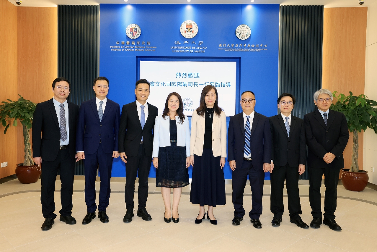 After the plaque unveiling ceremony, Secretary Ao Ieong U and other guests visited the Macao Centre for Testing of Chinese Medicine (MCTCM) at UM. Li Shaoping, director of MCTCM, said that with the aim of ‘developing testing services in Macao, certifying products in Macao, and promoting the industrialisation and internationalisation of Chinese medicine in Macao, MCTCM is committed to promoting the development of Chinese medicine testing and providing strong technical support and guarantees for Macao’s Chinese medicine brands. In the future, MCTCM and the joint research centre will complement each other’s strengths to intensify efforts in medicine testing, ensure the quality of clinical medication, and conduct in vivo drug testing, thus providing technical support for precision medicine and personalised medication.