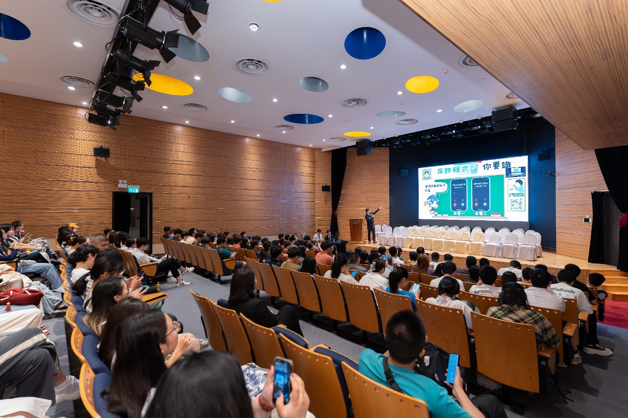 Additionally, to implement education on the spirit of “loving the motherland and Macao”, and to provide new students with a deeper understanding of national conditions, the University held its first national flag-raising ceremony of the new academic year on the same day, along with several seminars, among which the University invited Dr. Kong Wa, Associate Director of the Centre for Constitutional Law and Basic Law Studies at the Faculty of Law of the University of Macau, through the Macao Basic Law Promotion Association, to host a special seminar on “The Correlation between the National Constitution Law, the Basic Law and the National Security Law”. The University also invited the Judiciary Police to give a seminar on “Cybercrime and Fraud Prevention” to raise students’ awareness of and to protect them from cybercrime and fraud. Furthermore, the Public Security Police Force sent representatives to deliver a special seminar on “Road Traffic Safety and Special Authorisation to Stay” to enhance the understanding of local laws among non-local students.