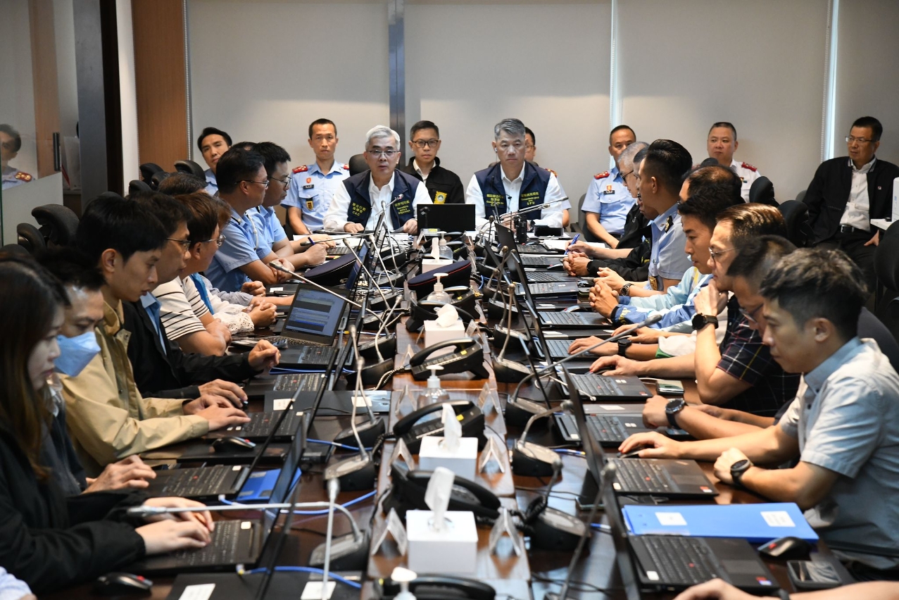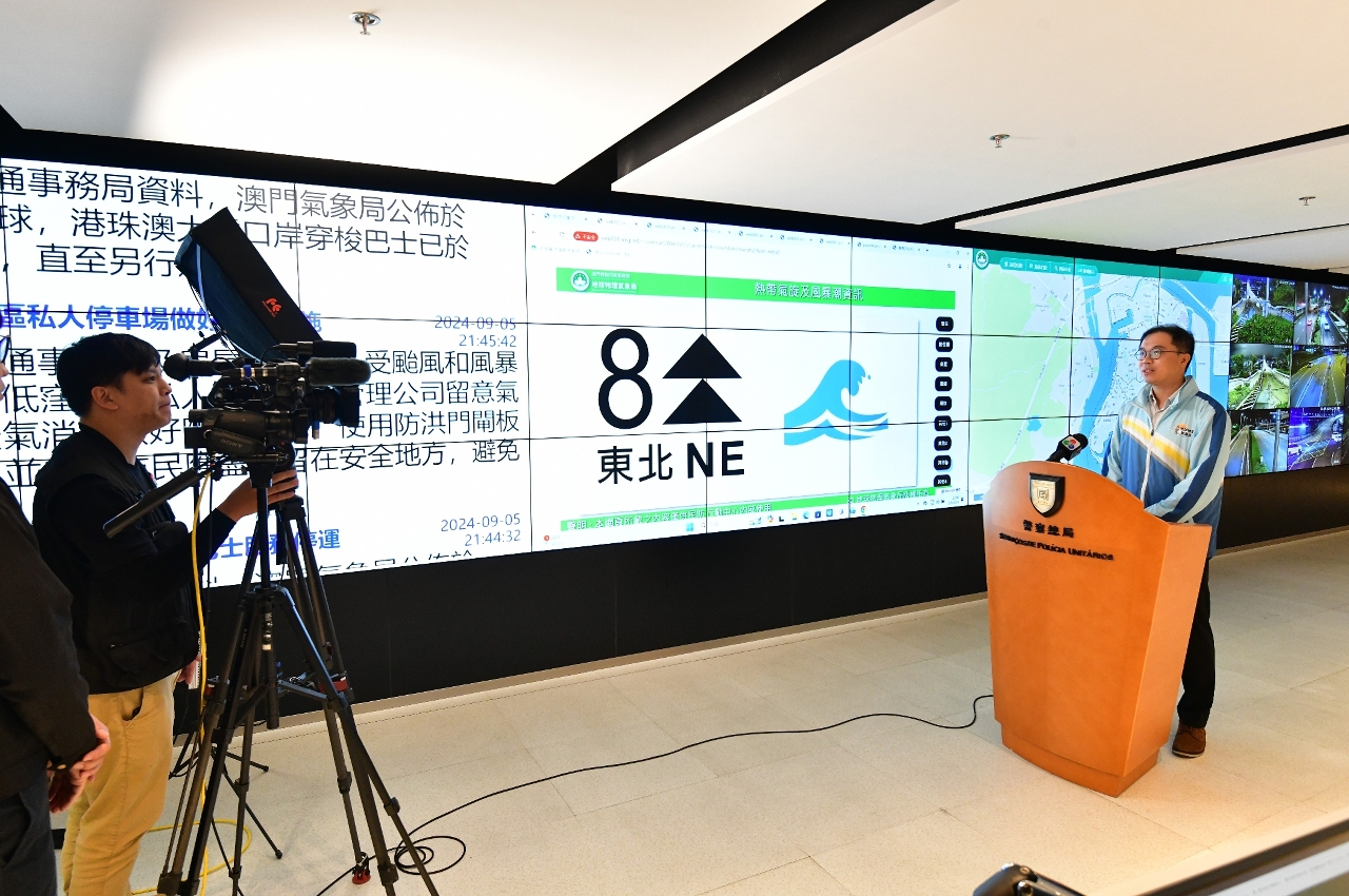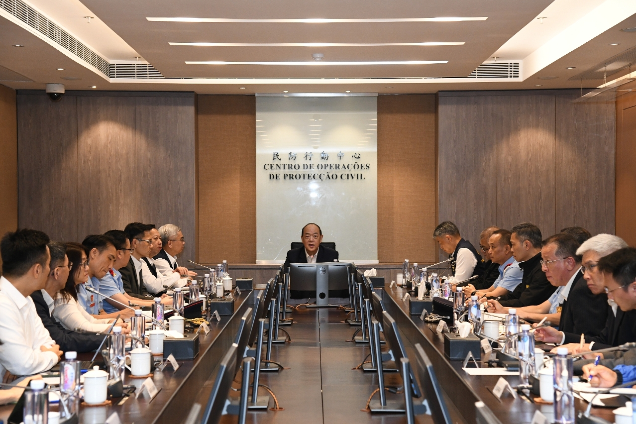 Due to the impact of Tropical Cyclone “Yagi”, the Meteorological and Geophysical Bureau issued Typhoon Signal No.8 at 22h00 on 5 September. In response to the natural disaster and to safeguard the life and property of citizens, in accordance with the Chief Executive Dispatch, pursuant to Article 8, Item 1 of Article 9, and Sub-item 7 of Item 1 of Article 11 of Law No. 11/2020 (Civil Protection Law), the Chief Executive declared that the Macao SAR entered into immediate prevention stage. All entities of civil protection structure reported to Civil Protection Operations Centre and adopted proper measures. The Chief Executive, Mr Ho Iat Seng, presided over a work meeting at the Civil Protection Operations Centre and listened to the briefing regarding the civil protection structure in response to the passage of the super typhoon. He also directed all entities to cooperate fully in the implementation of the civil protection contingency plan, so as to prioritize safeguarding the lives and properties of Macao residents.