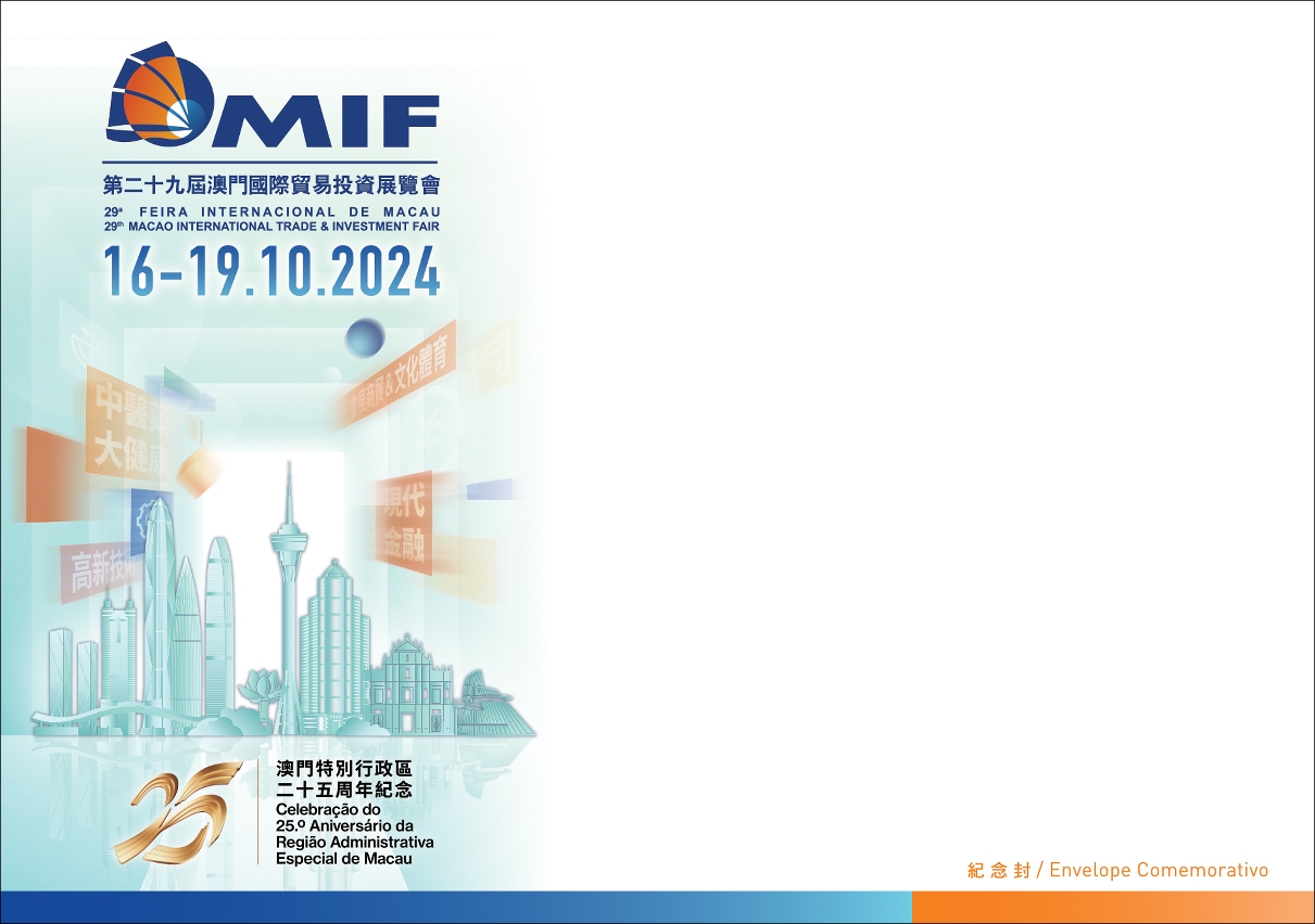 To celebrate the 29th Macao International Trade & Investment Fair, Macao Post and Telecommunications Bureau announces that a Temporary Post Counter will be set up at the Cotai Expo of The Venetian Macao and the Philatelic Shop of the General Post Office, during 16th to 19th October 2024 to provide the commemorative postmark cancellation service for the “29th Macao International Trade & Investment Fair”. Opening hours are as follows: