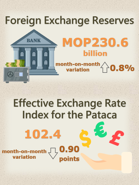 The Monetary Authority of Macao announced today (15 October) that the preliminary estimate of Macao SAR’s foreign exchange reserves amounted to MOP230.6 billion (USD28.81 billion) at the end of September 2024. The reserves increased by 0.8% from the revised value of MOP228.9 billion (USD28.50 billion) for the previous month. Macao SAR’s foreign exchange reserves at end-September 2024 represented 11 times the currency in circulation or 91.2% of pataca M2 at end-August 2024.