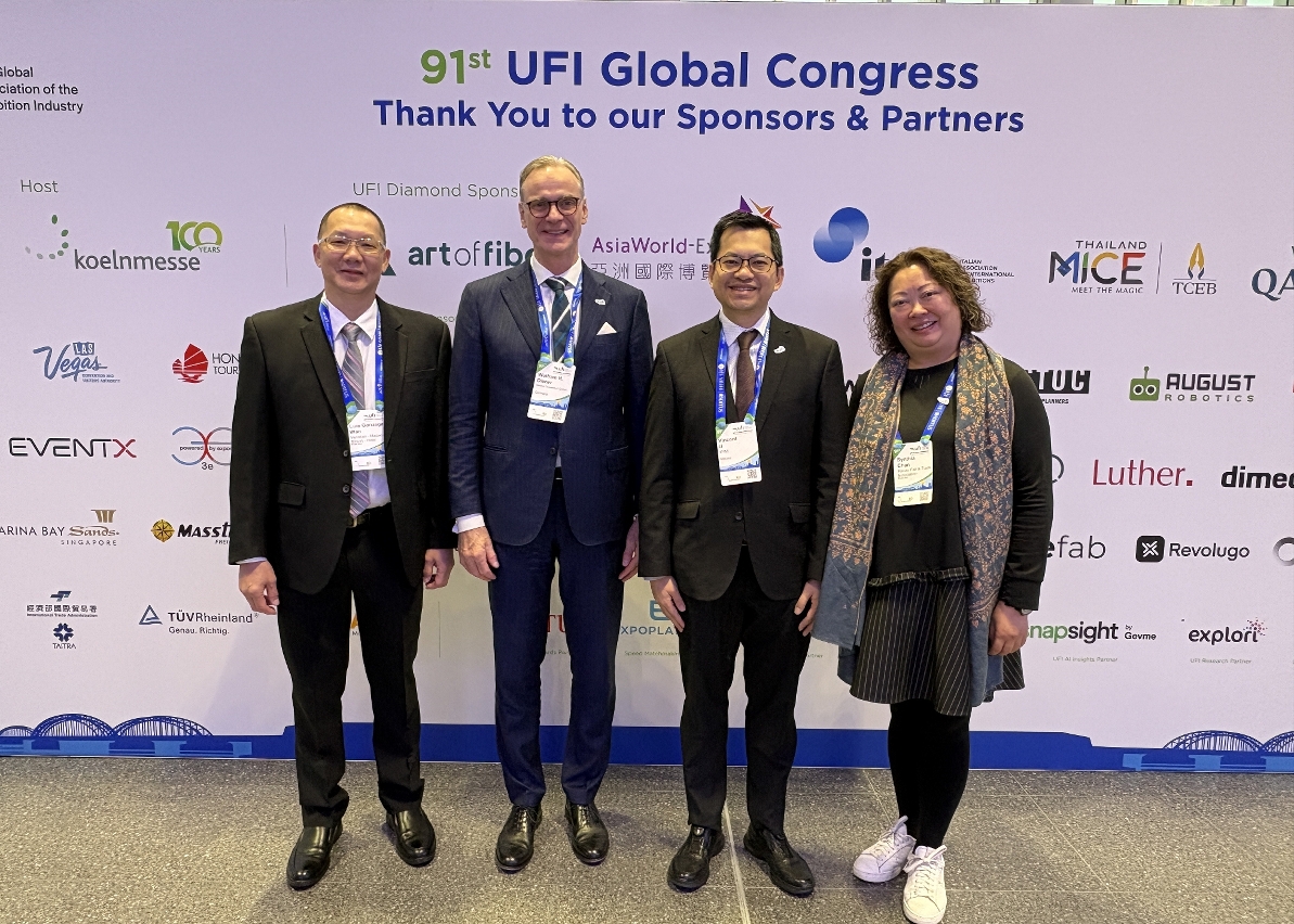 The UFI Board of Directors and Global Annual Congress took place in Cologne, Germany, from 20 to 23 November. During the meeting, both the UFI Board and representatives from the international exhibition industry praised the UFI Annual Asia-Pacific Conference held in Macao in March this year. They also acknowledged the professional training in the exhibition sector set to begin in Macao in June 2024, and confirmed that a series of exhibition training courses will continue to be held in Macao in 2025. President of the Commerce and Investment Promotion Institute (IPIM) Vincent U and President of Board of Directors of the Macau Fair & Trade Association Chan Si Nga attended the meeting as UFI Board members and participated in annual meeting activities along with representatives from Macao’s exhibition industry.