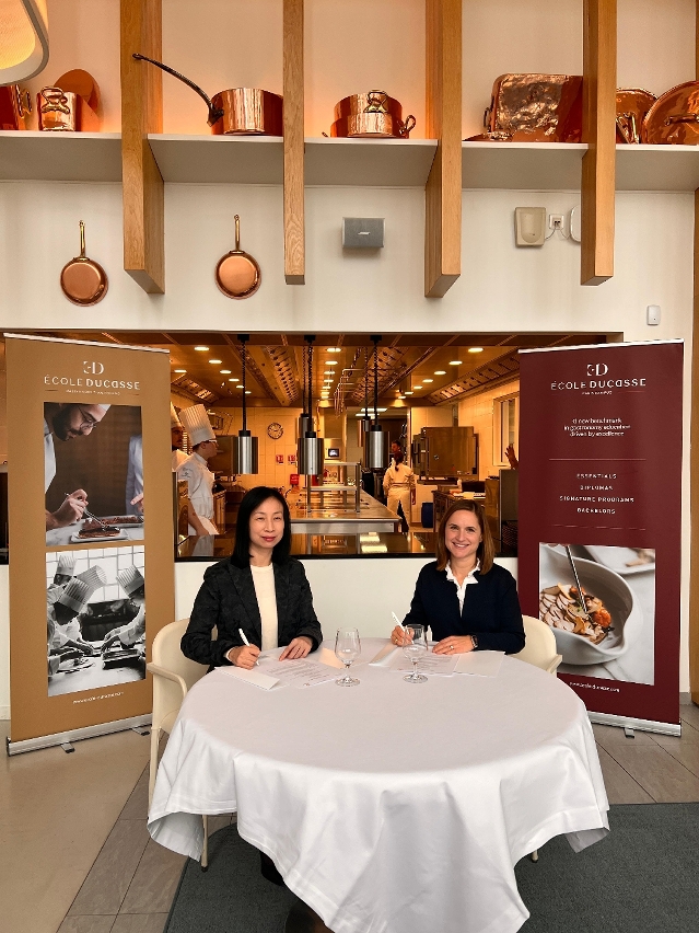 The first stop for the delegation was the renowned École Ducasse in Paris, France. Dr. Vong signed an important memorandum of understanding with Karine Hyon-Vintrou, Managing Director of École Ducasse. Eligible students of the Bachelor of Science in Culinary Arts Management programme at UTM will not only be exempted from the internship requirement of the diploma course at École Ducasse, but will also be offered scholarships.