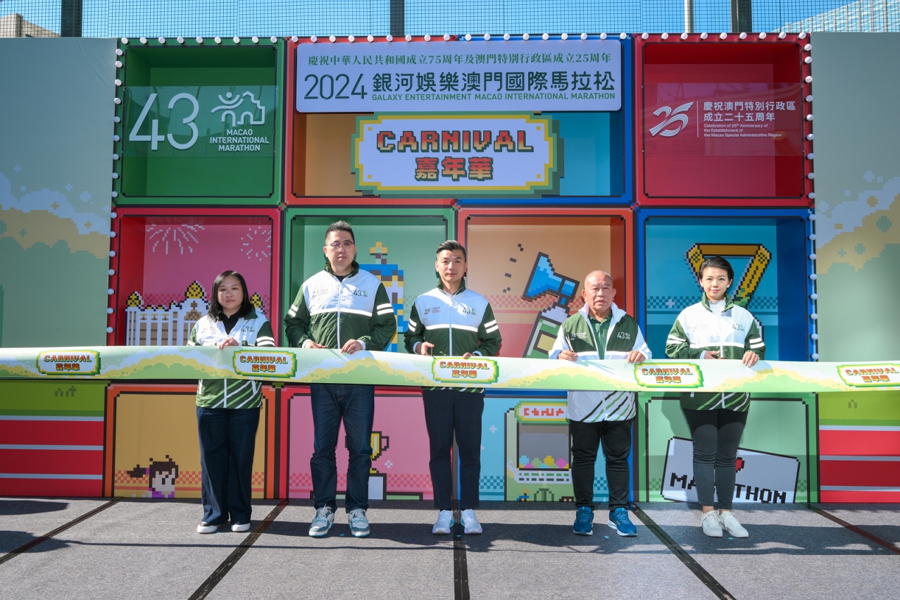 The ‘Celebration of the 75th Anniversary of the Founding of the People's Republic of China and the 25th Anniversary of the Establishment of the Macao Special Administrative Region - 2024 Galaxy Entertainment Macao International Marathon’, jointly organized by the Sports Bureau, Galaxy Entertainment Group, and the General Association of Athletics of Macau, is set to take place on 1 December (Sunday). To further immerse participants, residents and tourists in the joyful and festive atmosphere of the event, the ‘2024 Galaxy Entertainment Macao International Marathon Carnival’ is being held at Broadway Food Street of Broadway Macau™ on 30 November and 1 December.