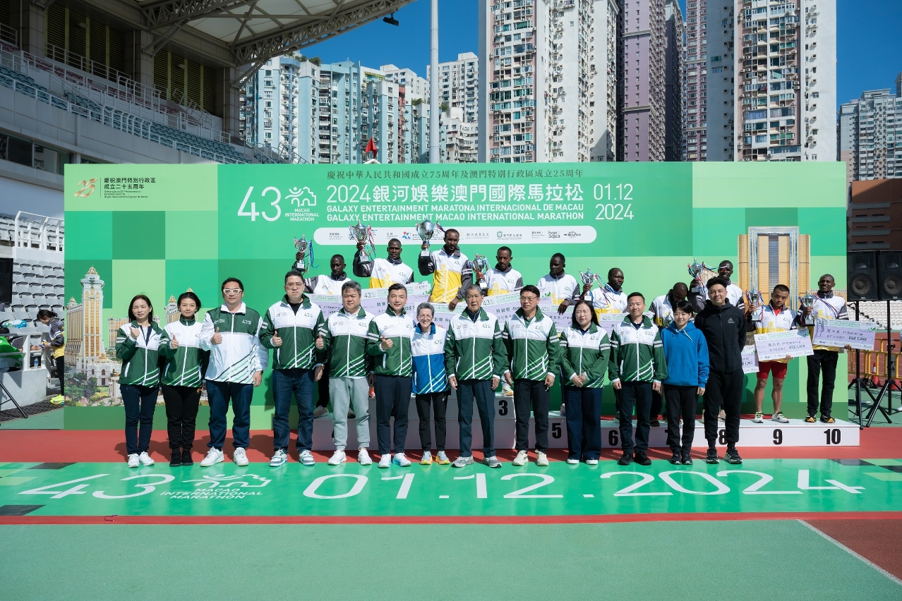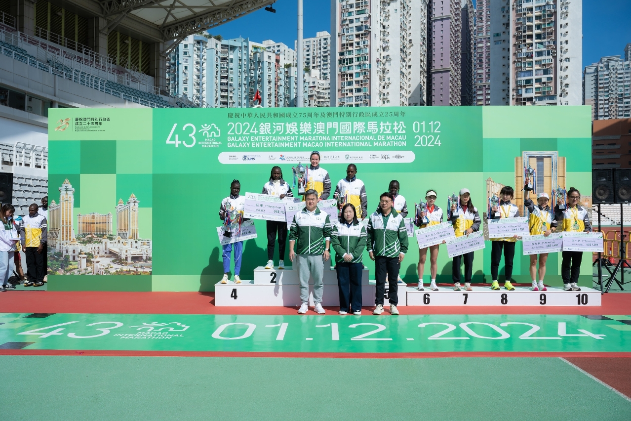 The ‘Celebration of the 75th Anniversary of the Founding of the People's Republic of China and the 25th Anniversary of the Establishment of the Macao Special Administrative Region - 2024 Galaxy Entertainment Macao International Marathon’, jointly organized by the Sports Bureau, Galaxy Entertainment Group (GEG), and the General Association of Athletics of Macau (AGAM), was held today (1 December) at the Olympic Sports Centre Stadium. Fikadu Debele from Ethiopia and Alexandra Morozova from Russia won the men’s and women’s marathon respectively.