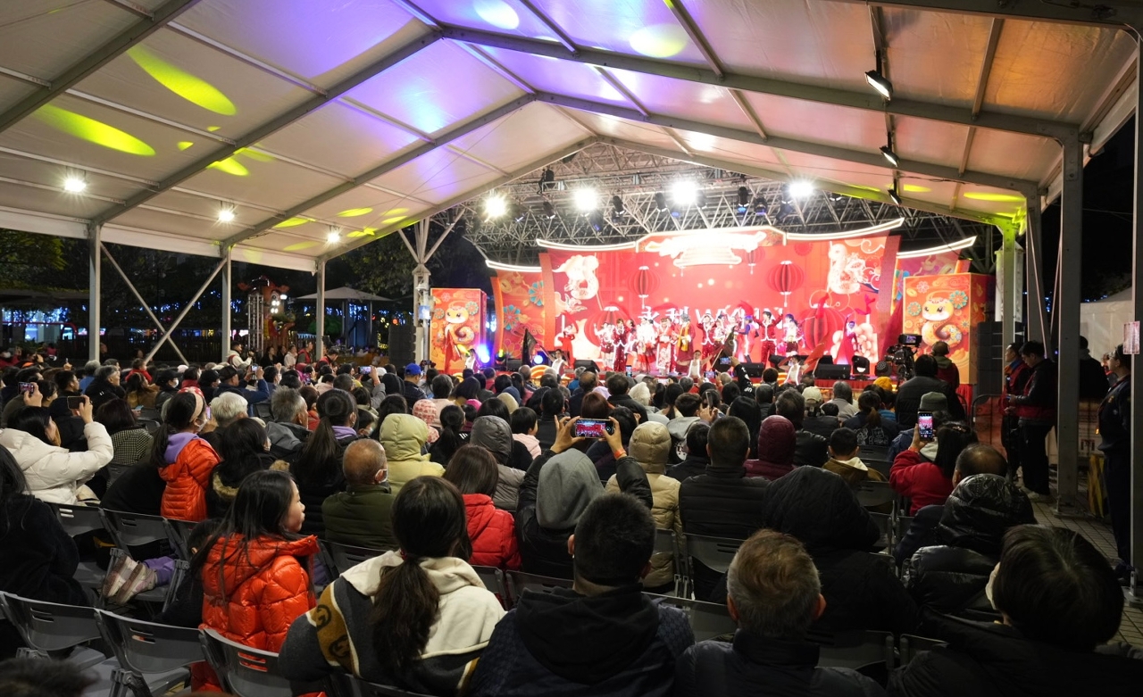 A cultural and artistic show enlivened Iao Hon Market Garden during the parade. There were performances presented by Wynn Macau, Limited, Sands China Ltd., SJM Resorts, S.A., Melco Resorts & Entertainment, MGM, Galaxy Entertainment Group and Prudential Hong Kong Limited (Macau Branch). In addition, Hong Kong artist Amy Fan and singer Alex Kwong, Macao singers Sean Pang and Kane Ao Ieong delivered fantastic performances and welcomed the floats together with spectators in lively vibes.