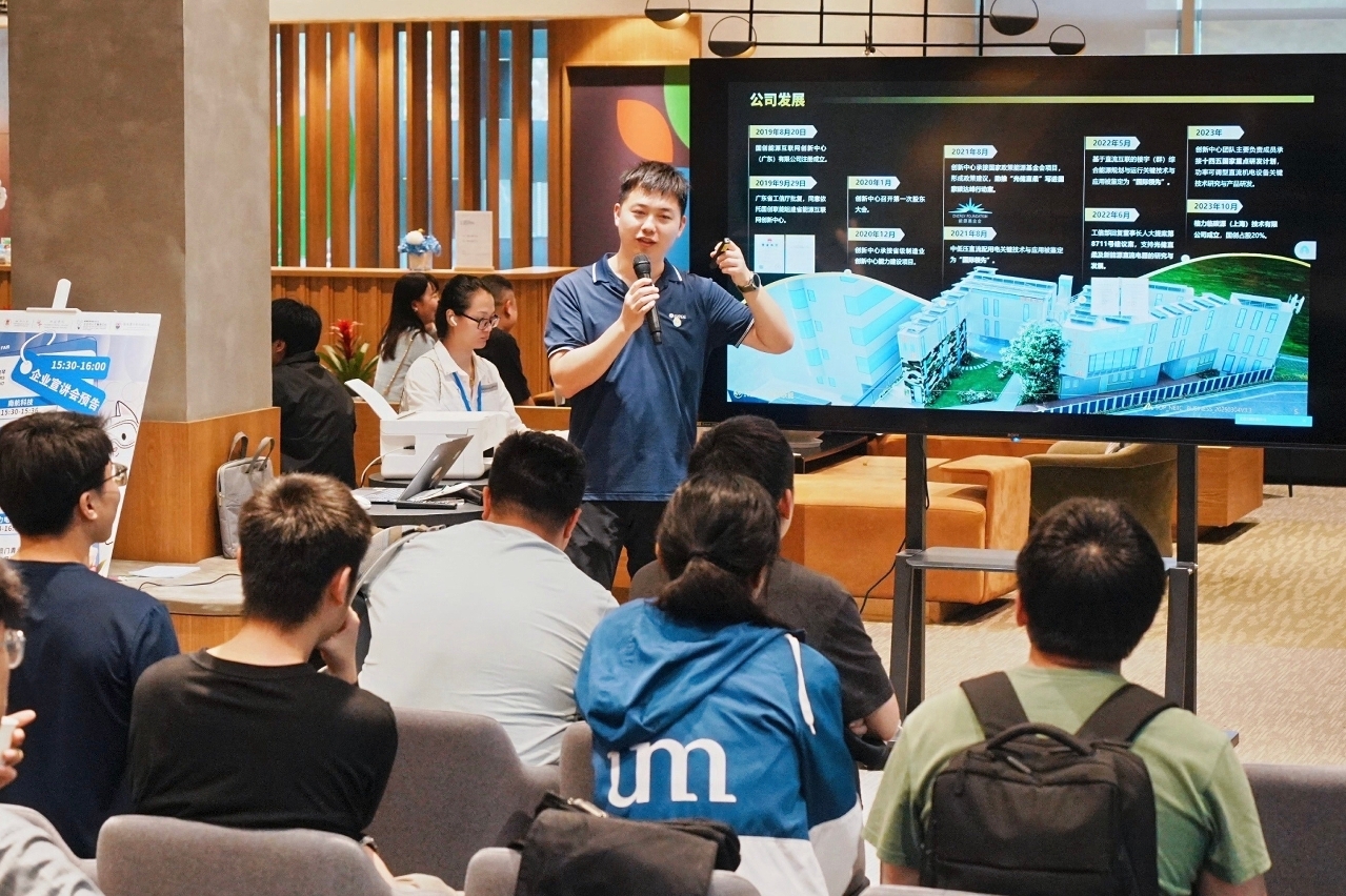 Speaking at the event, Dai Ningyi, assistant dean of UM FST, said that as an important base for cultivating high-quality science and technology talent, UM has actively expanded and deepened cooperation with enterprises in the Greater Bay Area in recent years to build a broader career development platform for students. The fair, a joint effort between UM, enterprises, and governments of both sides, provided important networking opportunities for students. Chen Jielong, a representative from the Science and Talent Department of the Economic Development Bureau of the Guangdong-Macao In-depth Cooperation Zone in Hengqin, said that the fair provided comprehensive support for employment and entrepreneurship, offering students valuable opportunities to connect directly with companies in the Greater Bay Area and helping them develop their careers in the region.