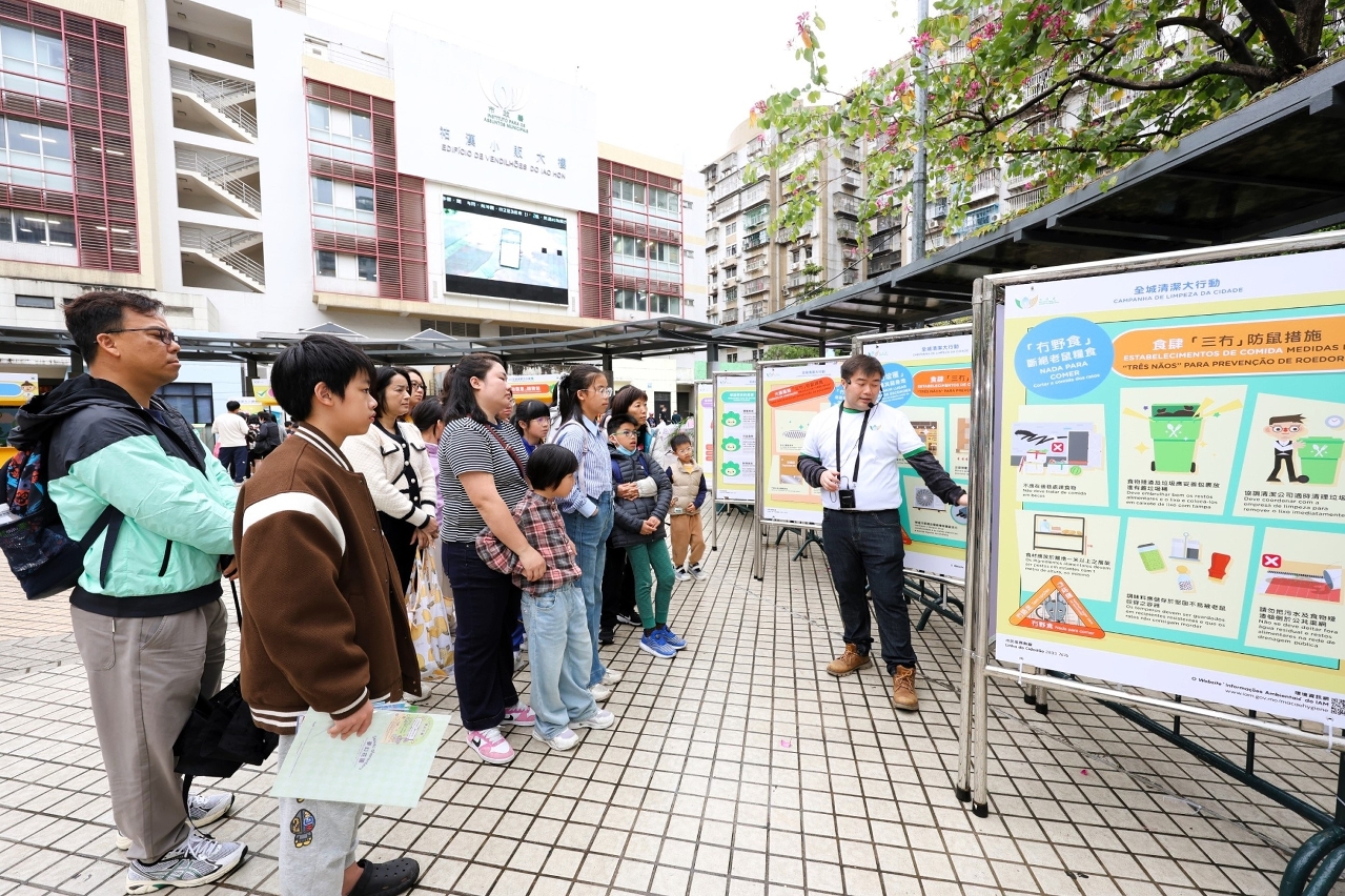 The citywide cleanup campaign spans from April to May. During this period, inspections and random testing of food establishments, food processing plants and construction sites are strengthened. Roving picture exhibitions introducing information on environmental hygiene are also held in various communities in Macao for 9 consecutive weeks. On Saturdays and Sundays, consulting street kiosks are set up to provide the public with technical opinions on prevention and control of rodent infestation, and special promotional and educational efforts are also carried out in “three no’s” buildings. On 10 May, another community cleanup, promotional and educational activity will also be held in Rotunda de Carlos da Maia and San Kio area. The public can refer to the details on the Environment Hygiene Information Webpage (www.iam.gov.mo/macaohygiene).