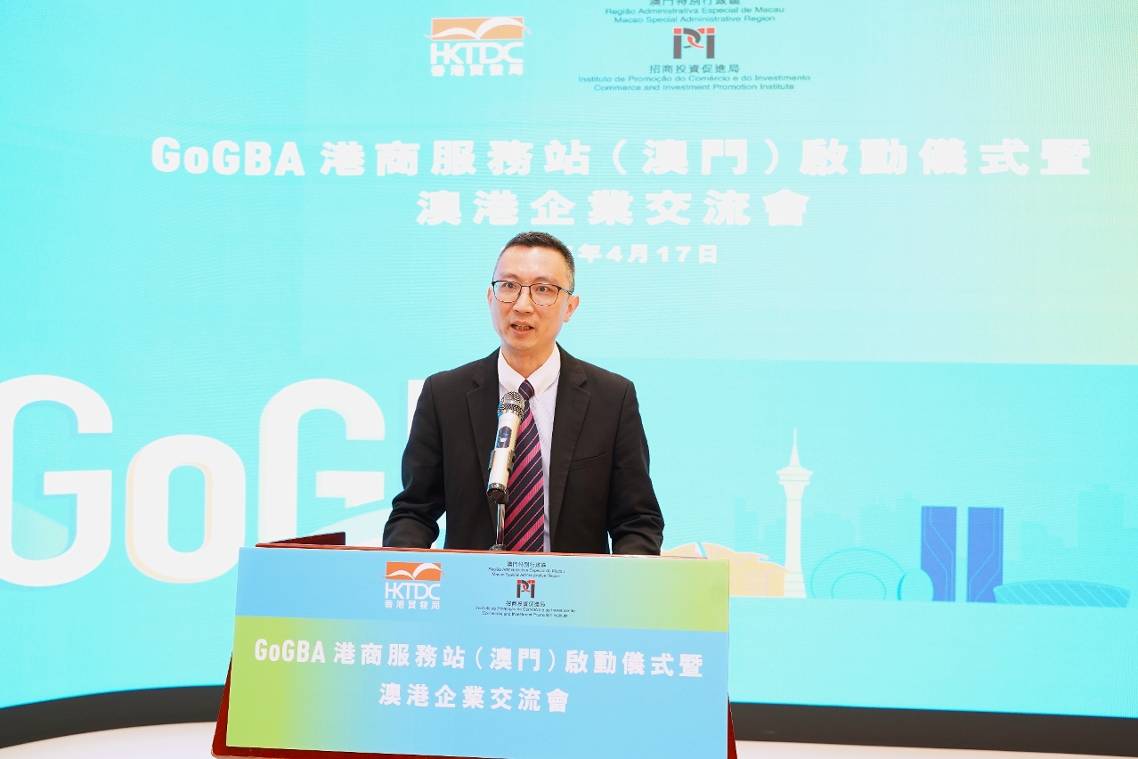 The GoGBA Hong Kong Service Station (Macao), jointly established by Macao Commerce and Investment Promotion Institute (IPIM) and Hong Kong Trade Development Council (HKTDC), hosted its inauguration and unveiling ceremony today (17th) at the China-PSCs Platform Complex in Macao. At the ceremony, representatives of both sides exchanged the “Memorandum of Cooperation on the Joint Construction of the GoGBA Hong Kong Service Station (Macao)”, aiming to provide enhanced support for Hong Kong businessmen seeking to venture into the Macao market. This initiative will further bolster the co-ordinated economic development within the Guangdong-Hong Kong-Macao Greater Bay Area.