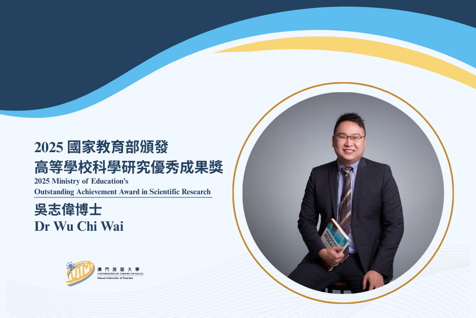 The Macao University of Tourism (UTM) is honoured to announce that Dr Wu Chi Wai (Don), a lecturer at the university, has been awarded the 9th Outstanding Achievement Award in Scientific Research (Humanities and Social Sciences) in the category of Youth Achievement Award by the Ministry of Education of the People’s Republic of China. This recognition was granted for the research paper he led, “Forecasting Tourist Daily Arrivals with a Hybrid SARIMA–LSTM Approach.” Regarded as one of the most prestigious academic accolades in China’s humanities and social sciences fields, the award celebrates exceptional contributions to research innovation by young scholars under the age of 40.