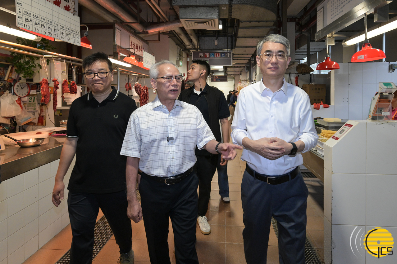 • The Chief Executive, Mr Sam Hou Fai, visits Patane Municipal Market Complex to inspect its environment, facilities and operational conditions.