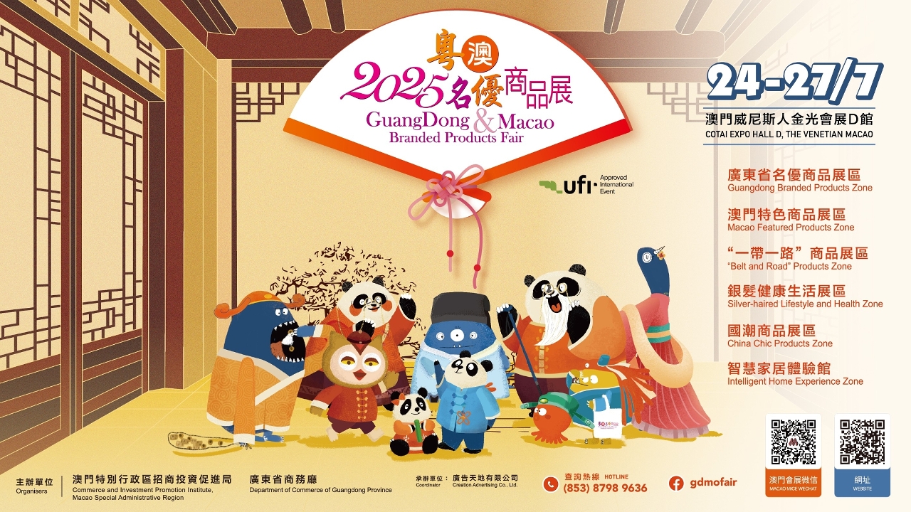 The 2025 Guangdong & Macao Branded Products Fair (2025GMBPF) will be held from 24 to 27 July in Cotai Expo Hall D, The Venetian Macao. With the first day (24 July) designated as “Trade Visitor Day”, the event will open to the public from 25 to 27 July. The public open day features a variety of experiences, including smart homes, historical and cultural charm, and Chinese and Western cuisine, with generous gifts prepared by the organisers during the event.