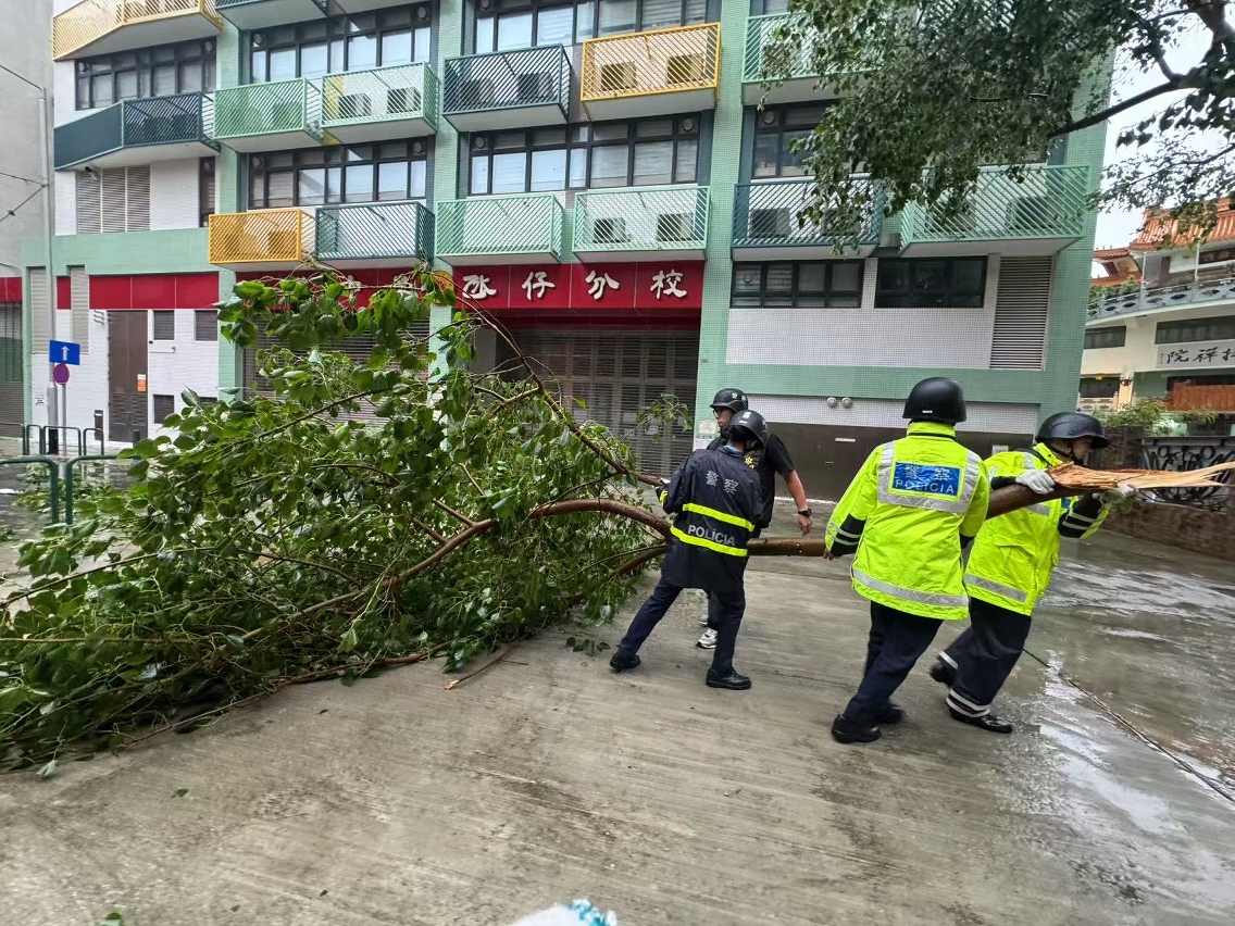 At around 6:30 p.m., the Security Forces and Services, operating under safety permits, quickly formed clearance teams. Staff were dispatched in advance to different districts in Macao to remove collapsed trees and clear road obstructions. This ensured the smooth flow of major roads across Macao, swiftly restoring social order to normality. These efforts were undertaken to ensure the safety of both citizens and tourists during their travels.